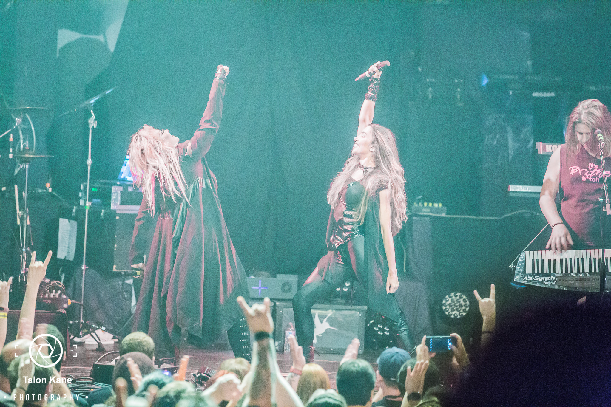 The stage was sitting lower than usual for most House of Blues shows and there were two cargo boxes on wheels standing upright in the photo pit with us. We soon figured out why as Tommy stepped out onto the boxes and then stretched on leg onto the barricade to be closer to the fans and literally reach out to touch them. They continued with a great setlist that included “Insomnia”, “When The Lights Are Down”, and “Veil of Elysium”. When they got to “Ravenlight”, Johan got his opportunity to show off his drum skills with an amazing solo performance. They brought Lauren back out on stage to perform “March of Mephisto” from ‘The Black Halo’ album. Her vocals intertwined with Tommy’s made a perfect pitch during their songs together. Kamelot also brought out Charlotte Wessel from Delain to perform “Sacrimony (Angel of Afterlife)” from the ‘Silverthorn’ album with Tommy and Lauren. Oliver also got to show off his keyboard chops with a great solo after the song. Kamelot wrapped up their set with “Forever” and then encored with “Liar Liar (Wasteland Monarchy)”.