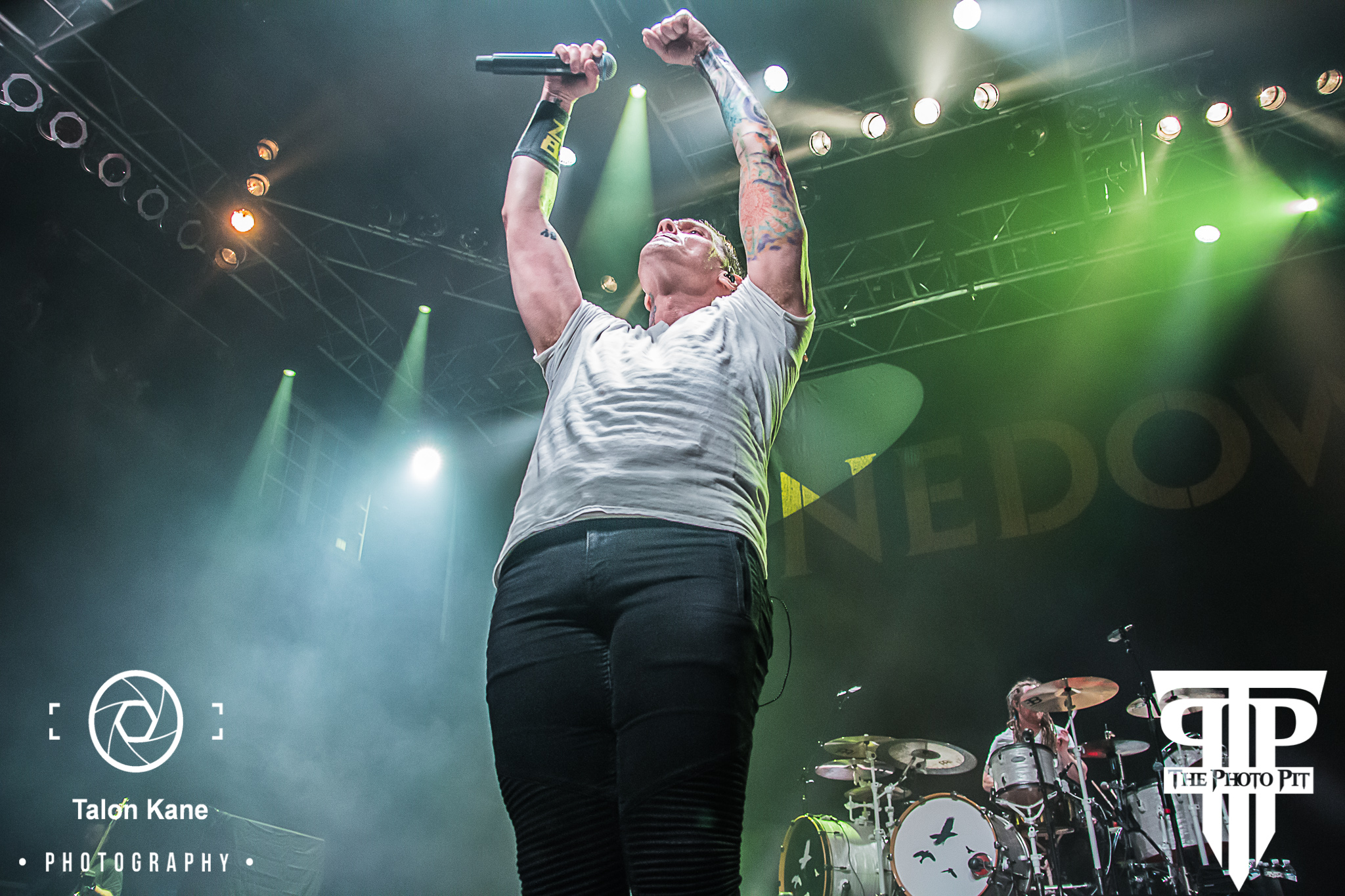 Before they continued, Brent took a moment to truly address the crowd thanking them for their support and thanking 101.1 WJRR for their support. Brent explained to the crowd the story of when ‘Leave a Whisper’ was released how no one wanted to help provide support. They couldn’t get onto tours, no wanted to interview them, they couldn’t get onto covers of magazines and weren’t getting any radio play either. He joked it was because they were all too ugly to put in front of people. But, 101.1 WJRR in Orlando, FL was the first national radio station to play Shinedown on the air and how thankful they’ve been to the station for supporting them from their start and ever since. They then went into playing “Simple Man” from the Deluxe reissue of ‘Leave a Whisper’, which had the whole crowd once again singing along. And before they wrapped up their final song, Brent had the crowd lock arms with each other, and when he counted to 3 to have them all jump up and down as they played. When he said 3, House of Blues was shaking with all the people jumping. It was an amazing sight to see as Shinedown wrapped up with “Brilliant” from ‘Attention Attention’.