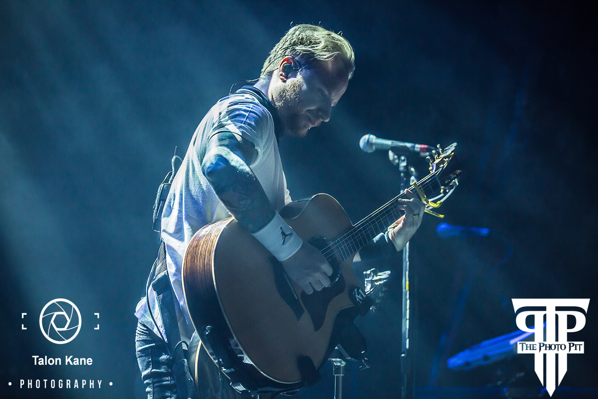 They kicked off the second set with the #1 “Devil” from ‘Attention Attention’, which the crowd loved. And the group of us in media who stuck together to watch the show after photographing were definitely singing along with the rest of the crowd. They followed up with “Diamond Eyes” (another favorite of mine) which appeared on the Deluxe reissue of ‘The Sound of Madness’ and also used in the movie The Expendables. And the crowd was singing along loudly for this one. But the singing never stopped as they followed with “Cut the Cord” from their 2015 album ‘Threat to Survival’. The band moved into the newest single from ‘Attention Attention’ titled “Get Up” and then “Enemies” from the 2012 album ‘Amaryllis’. Shinedown moved into acoustic mode first performing “Amaryllis”, the title track from the 2012 album.
