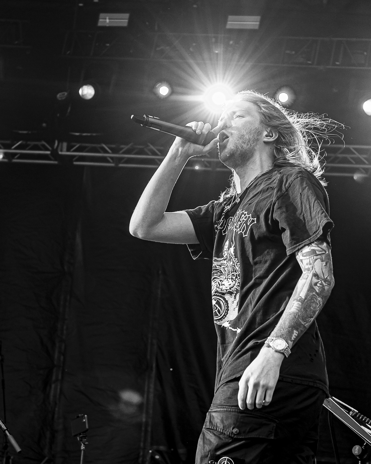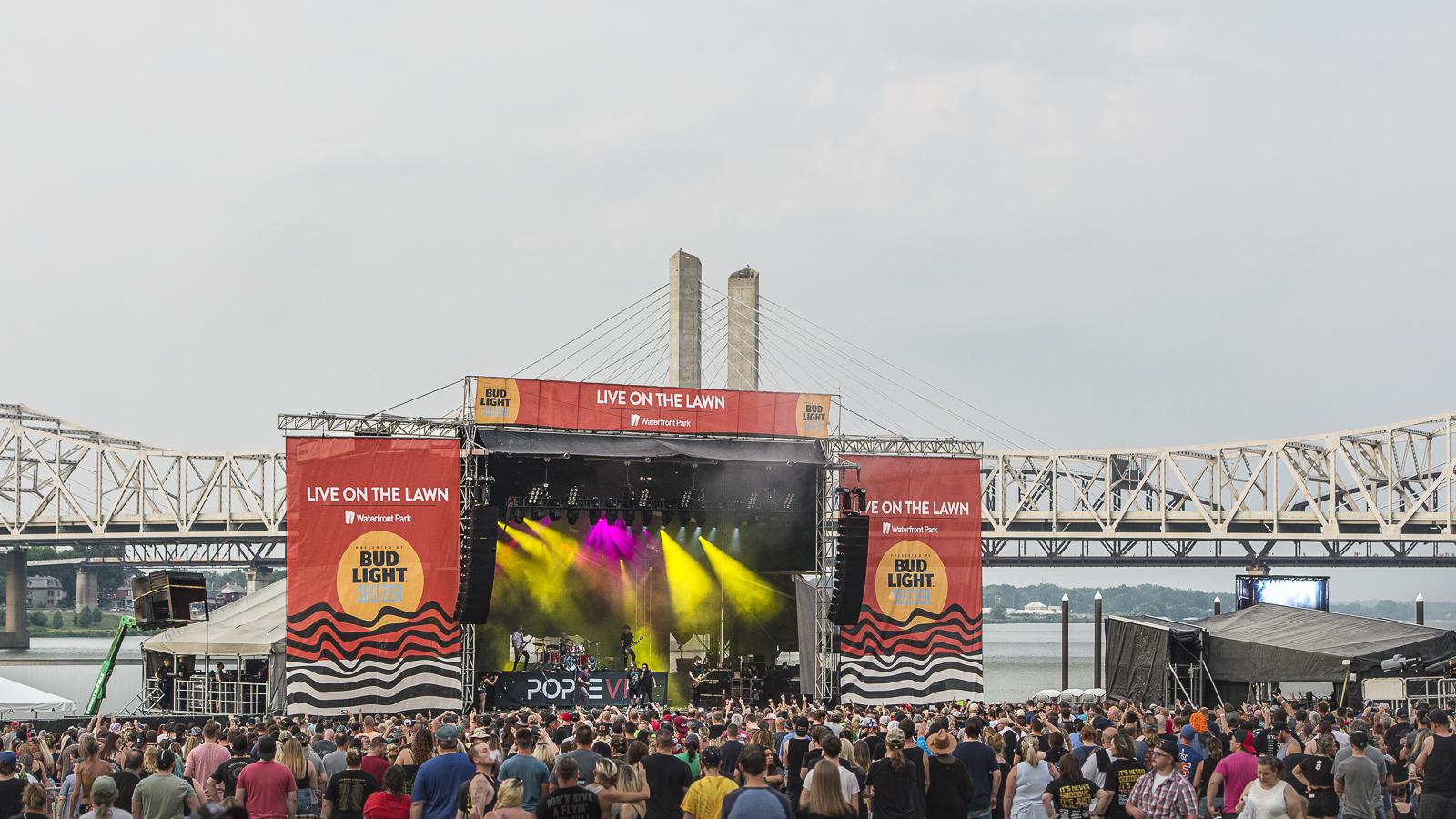 Louisville Kentucky is known for several things. Bourbon, Horse Racing, Mohammad Ali, and now the concert mecca. In 2014 Danny Wimmer Presents graced the bluegrass state with the inaugural Louder Than Life festival. Within five years it has grown into one of the largest rock festivals in the U.S. Within those five years Danny Wimmer Presents has fallen in love with the lively city of Louisville. He has formed two more weekend festivals (Bourbon and Beyond and Hometown Rising) and a waterfront concert series (Live on the Lawn). On a typical hot sticky August night, I wandered downtown for my first Live on the Lawn. The show featuring Shinedown and Pop Evil had an opener that surprised and excited the massive crowd.