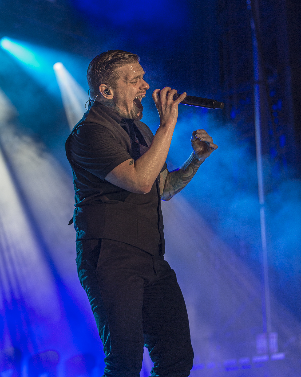 And it is always a pleasure seeing the stunning and talented Hayley Cramer on drums. While making my way to my seat I overheard a little girl tell her mom “Look mommy the drummer is a blond girl like me! Does that mean I can be like her?!”. Yes, little rocker girl. Yes, you can, and I hope in 10 years I see you on stage like your new idol Hayley. Nick Fueling and Dave Grahs took turns during the set showing off the fact that a 21 month dry spell did not falter their ability to shred. Before the next song began Leigh spoke, announcing he’d like to bring some friends on for the next set. Zero 9:36 hops onto the stage and sang alongside Pop Evil for “Trenches” from Onyx. The theme of survival and perseverance was evident for the set. Zero 9:36 provided a fun element to the already popular hit song. Once the song concluded high-fives and hugs were given all around. Before concluding their set with my personal favorite “Waking Lions” Leigh asked who all had brought their kiddos to the show. Much to my surprise several proud parents screamed. Some even putting their kids up in the air Simba style. Pop Evil was elated to see kids in the crowd with their parents. Who doesn’t love seeing kiddos at shows? He thanked the families for doing the right thing and raising their kid’s metal. After the song concluded the band members sought out those kiddos to give them picks, setlists, and a few drumsticks. One thing I love about Pop Evil is they always take the time to make their audience feel loved. Whether it’s the 22 soldier salute or acknowledging their youngest fans; Pop Evil knows how to engage an audience. Catch them on tour now through Oct 8th on either their Versatile Tour or at one of the amazing U.S. Festivals. Buy your tickets at popevil.com.