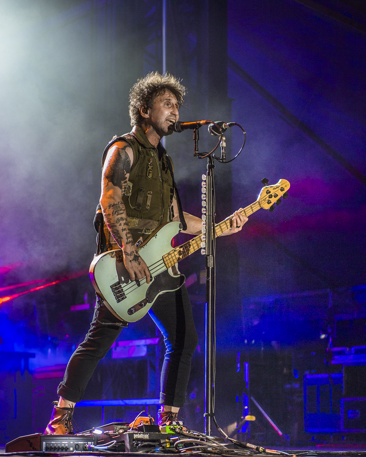 Once the 3rd song finished Brent finally greeted the crowd. Brent Smith is a 100% class act. Genuine to every soul he’s played for and incredibly talented to boot. The first words from his mouth were “Did you miss us?” The eruption was undeniable and probably heard all the way to Lexington. A cackle could be seen from the two long term band members Zach Myers and Eric Bass. Sadly, we learned drummer Barry Kerch had fallen ill and would not be joining us. Dustin Steinke from Sixx:A.M. was filling his very big shoes. Dustin was on point all night. Not only did he perfectly drum every song, his fun personality totally complimented the bands. In traditional Brent Smith fashion, he encouraged the crowd to hug and high-five their neighbors. There was zero hesitancy notated in this request. High fives and hugs could be witnessed from the front to the back. As the crowd embraced each other “State of My Head” also from Threat to Survival rang out. Before heading into any lover’s anthem, Brent made sure the ladies knew the song was for them. The squeals that came from the crowd during “If You Only Knew” from 2008’s Sound of Madness signaled that the ladies were not disappointed.