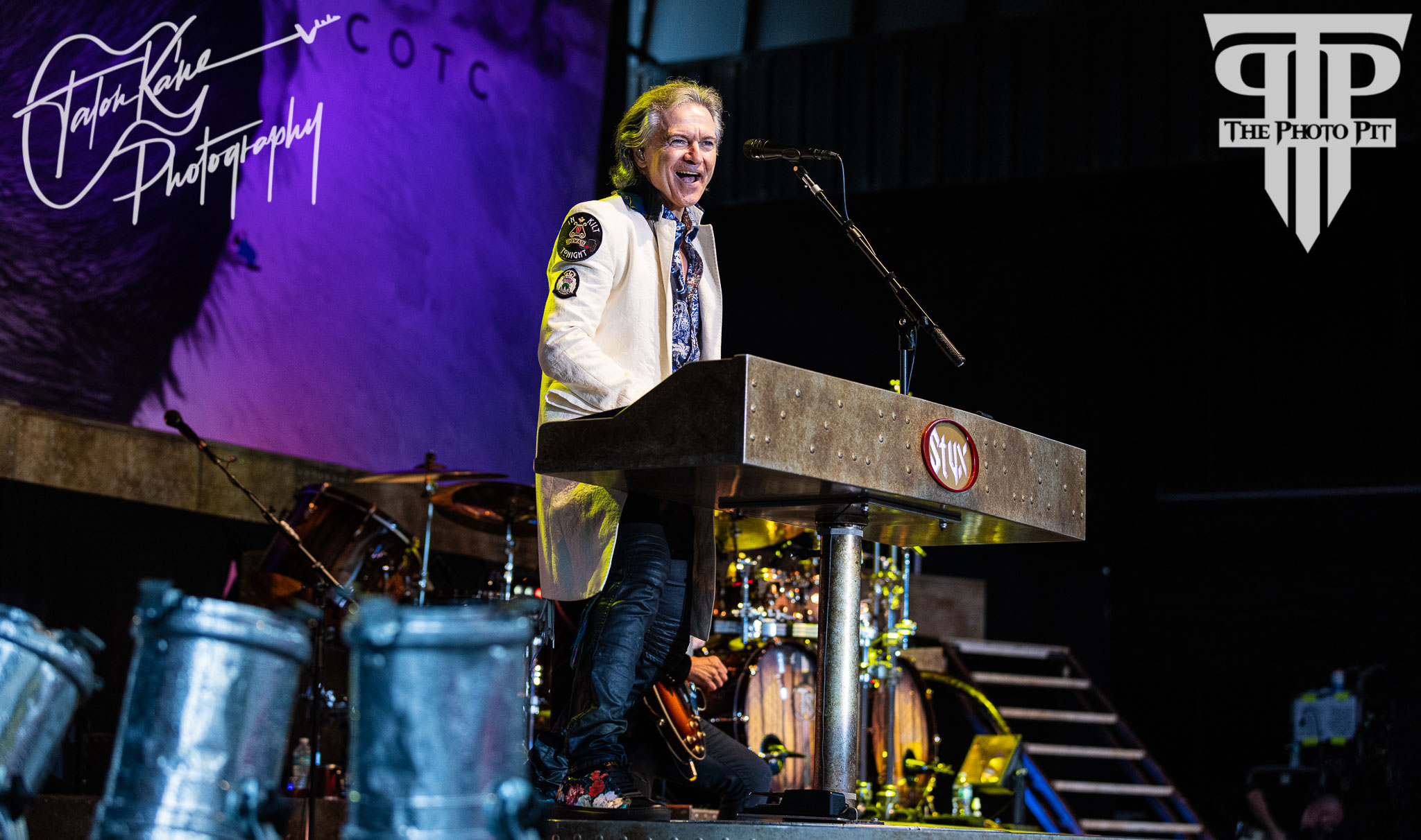 Since there was no opener for the evening, Styx gave the fans two whole sets with an intermission in between. During the first set Tommy spoke to the crowd how happy and excited he was to be back on stage and in front of all the fans. He also swore off wearing sweatpants ever again claiming that’s all he wore during the pandemic. You could truly see how happy he was to be back on the stage. The first set had a great selection of songs to get the crowd moving with “Too Much Time on My Hands” (where “JY” is buying per Tommy Shaw) from their 1981 album Paradise Theater, “Blue Collar Man (Long Nights)” from the 1978 album Pieces of Eight, and “Light Up” from the 1975 album Equinox. Of course, Lawrence nailed it performing “Rockin’ The Paradise” wishing he had a shiny jacket and hat, which were provided to him the moment he said it. I love his onstage presence as his personality and flair lights up the stage and the crowd.