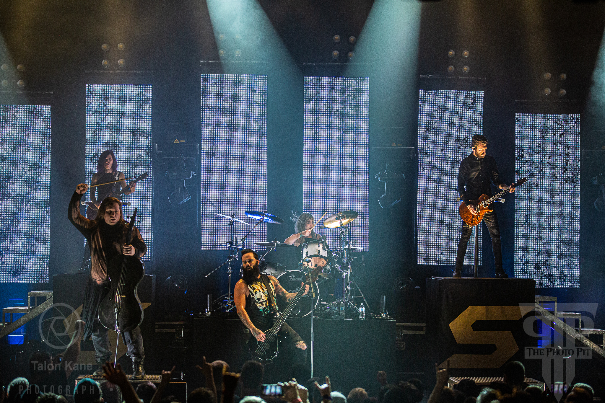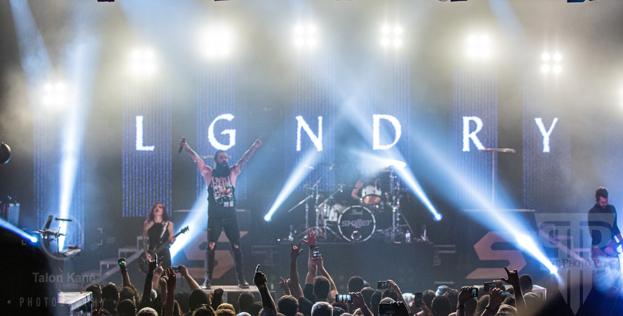 The Tennessee rock band Skillet was getting ready to come to the stage. The band has been active since 1996 and considered one of the hardest working bands around. They are constantly on tour, always involved in new projects or music, and love their fans as much as the fans love them. Skillet is no stranger to success having their last 4 albums hit number 1 on Billboard’s U.S. Christian Album charts and certifying two Platinum albums and two Gold albums. The band is touring in support of their tenth studio album Victorious which was released on August 2, 2019. Skillet is John Cooper (bass/vocals), Korey Cooper (rhythm guitar/keyboards), Seth Morrison (lead guitar), and Jen Ledger (drums/vocals). Also along with them on this tour was cellist Tate Olsen.