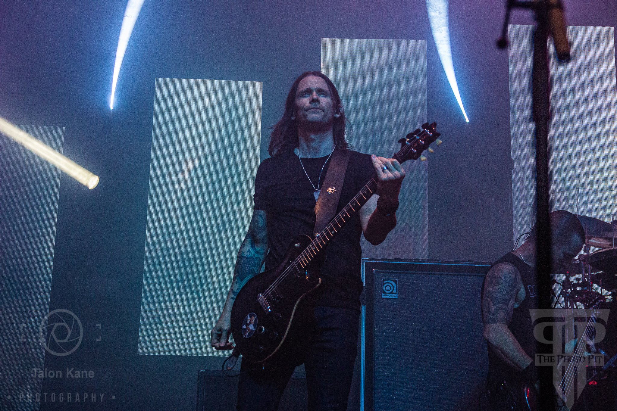 Before they hit the stage, Supa Dave and Pat Lynch came back out to bring special guest Lajon Witherspoon on stage to promote Sevendust acoustic performance at the House of Blues Orlando on December 29th. Also, Sevendust will be joining Alter Bridge on their European tour to promote Walk The Sky. After the left the stage, the lights dimmed and across the electronic boards in the back you could see the logo for Alter Bridge. The crowd cheered as the opening track from Walk The Sky “One Life” played over the speakers as the band made their way on stage. Alter Bridge hit it into high gear right off with the first single from Walk The Sky titled “Wouldn’t You Rather”. A solid tune that shows off the musical and vocal talent that makes Alter Bridge who they are. The band went with darker lighting for this show in order to show off an amazing laser light display throughout the night. They followed up with their #1 hit single “Isolation” from ABIII.