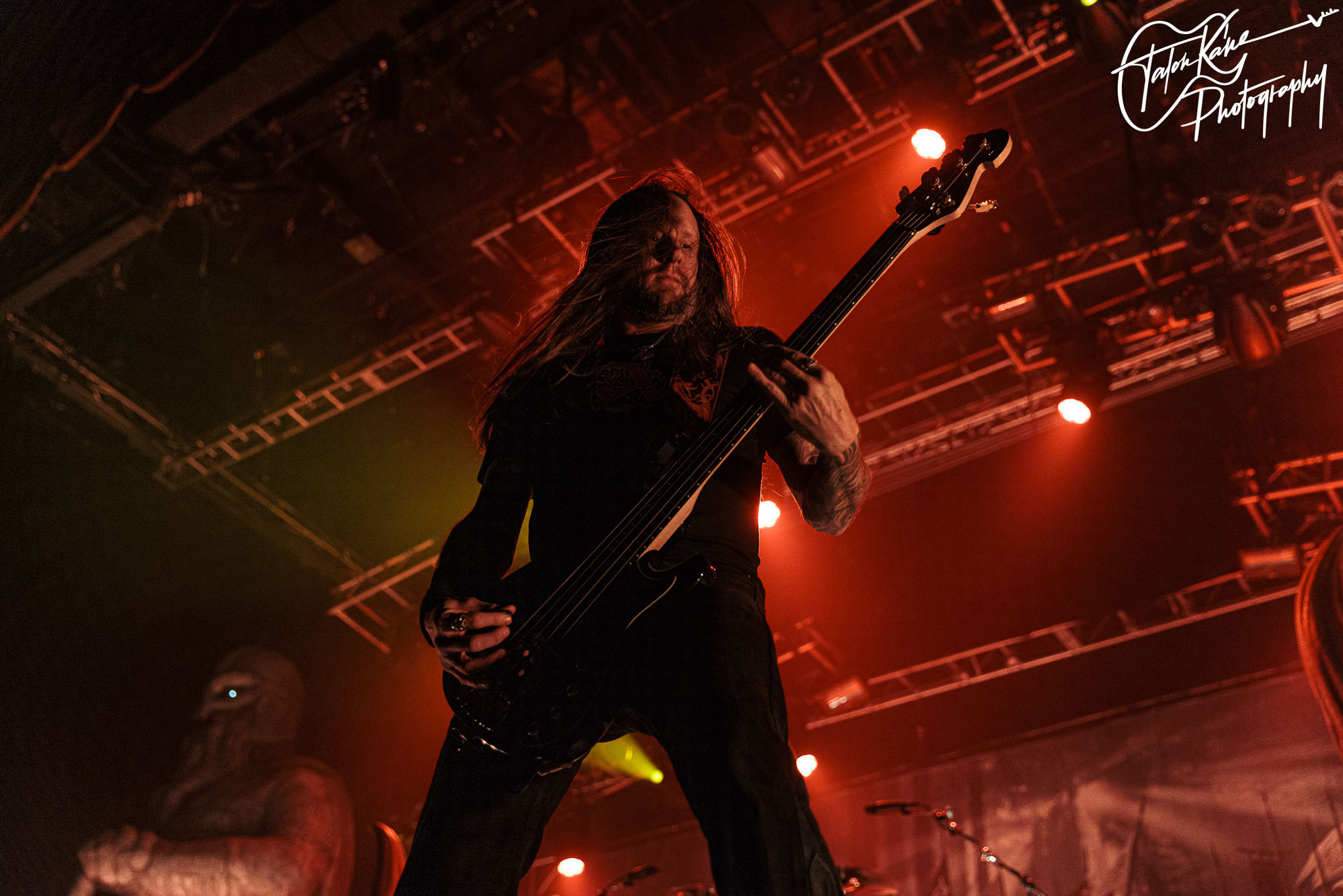 Carcass put on a great set that night with fast-paced metal. Jeff was having a great time on the stage singing to the crowd and engaging with them frequently. I really enjoyed him getting stylish with his bass playing, holding it up in the air as he played and sang. Bill and James harmonized well through their songs and Daniel’s drumming sounded fantastic. They performed an eleven track setlist including songs “Buried Dreams”, “This Mortal Coil”, and “Heartwork”. Sadly, Carcass did not allow any of the media to photograph their set that night. You can find their links to music and merch over at https://linktr.ee/carcass.