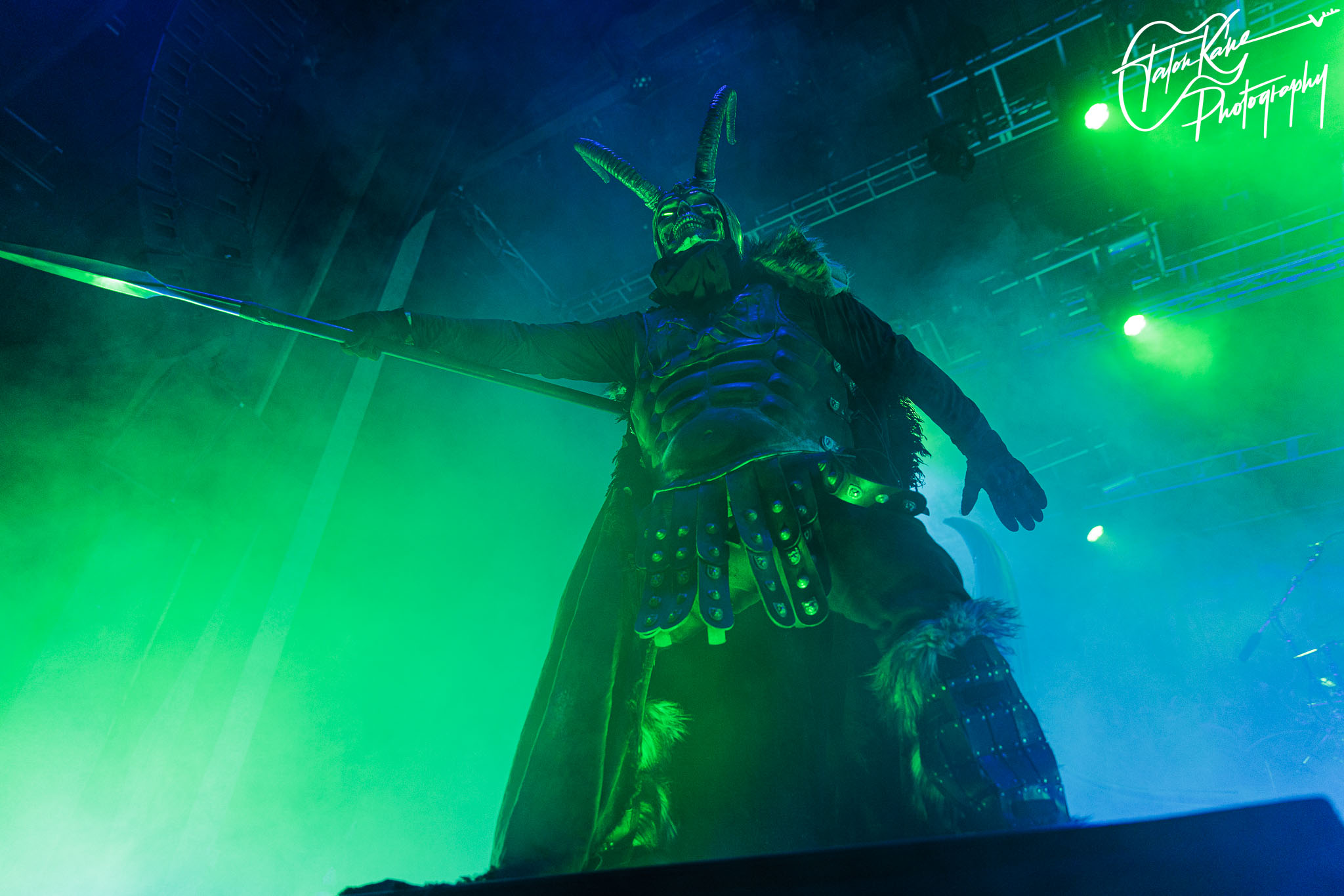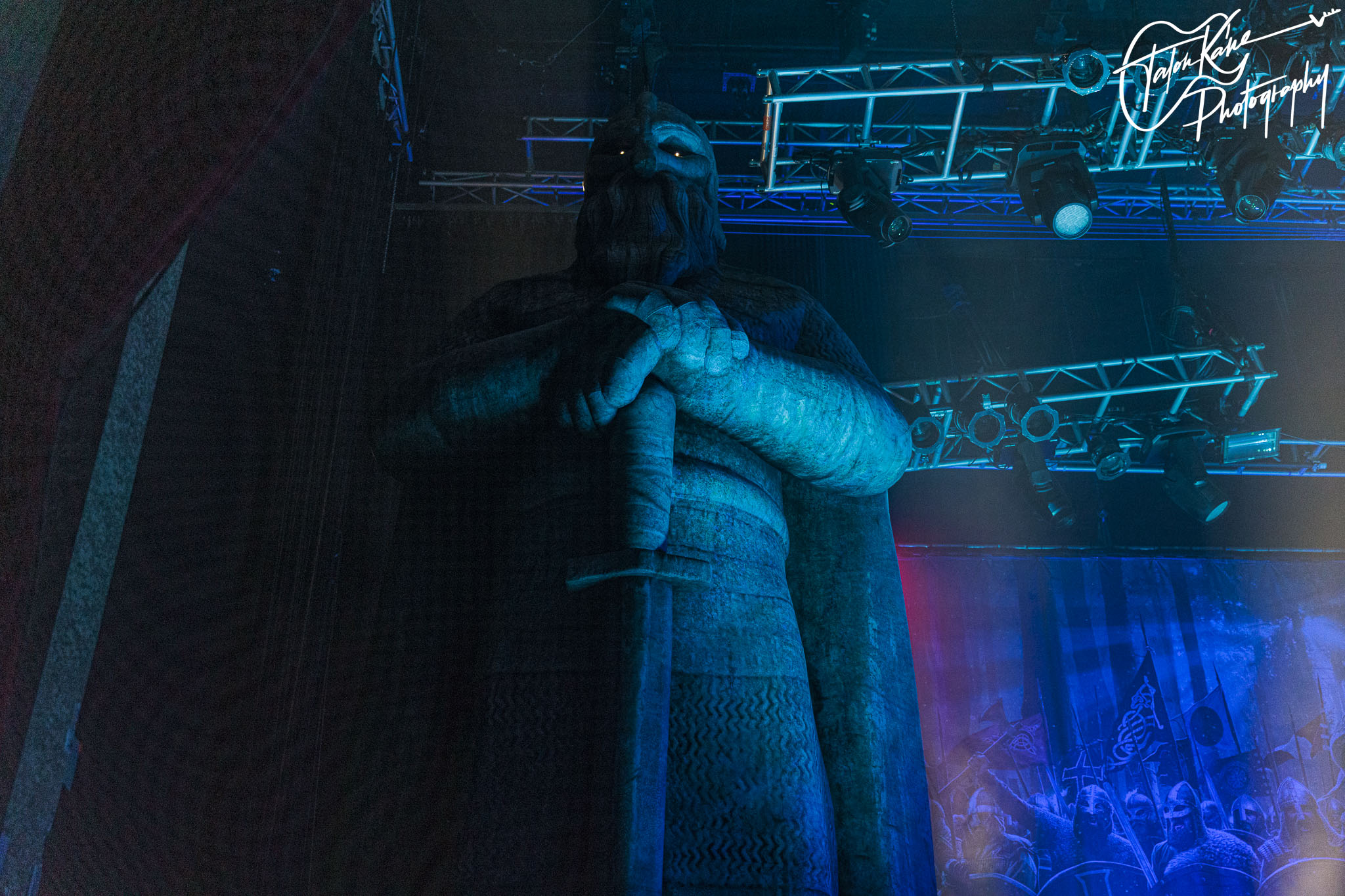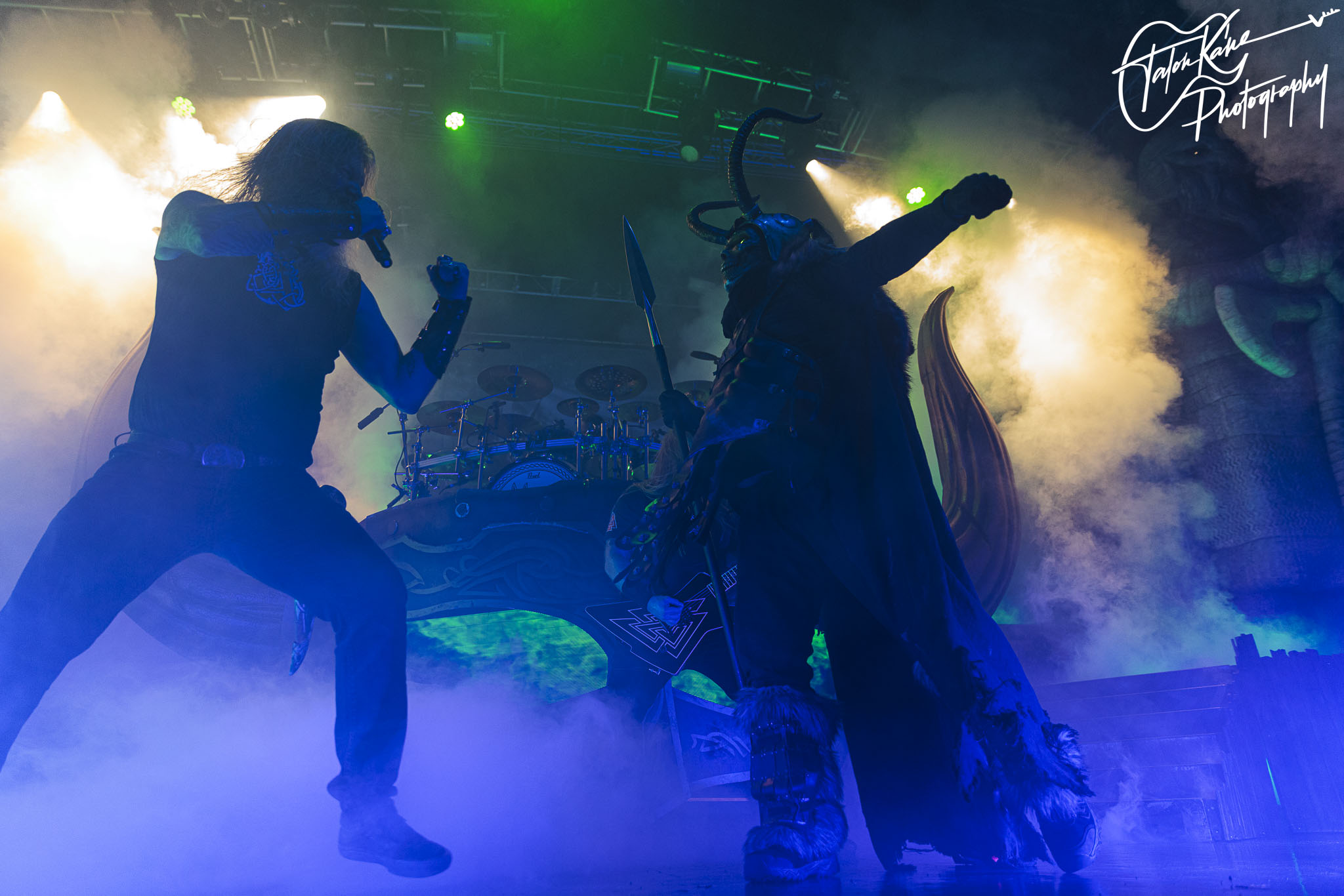 Second, their stage setup is always amazing. Normally, they tour with their massive Viking ship where they perform on it as it sits in the middle of the stage with the dragon headpiece on the front with red eyes and smoke coming out of the nose. This time, they had a massive Viking helmet as Jocke’s drumriser and it was fucking awesome! The eyes were video screens that changed during each song and it was a fine piece of craftsmanship. Besides that, there were two inflatable Viking statues that were massive, an inflatable snake that circled the whole stage, and the fog machine and lights completely added to the atmosphere. But, when you get someone come out to represent Loki during “Deceiver of the Gods” and two people dressed as Vikings literally swordfighting and shield bashing each other on stage during “The Way of the Vikings” you can’t help but get amped up for their shows.
