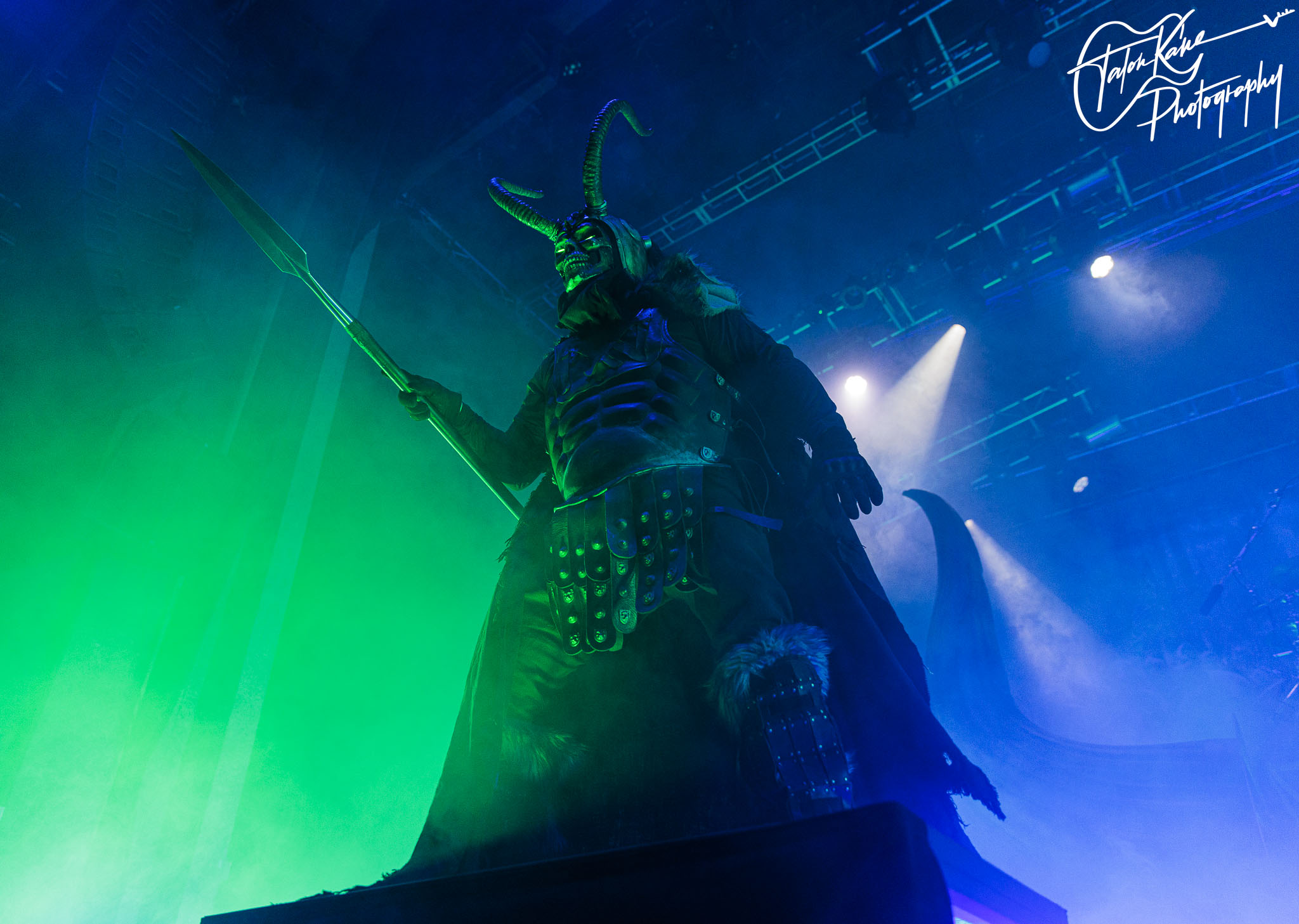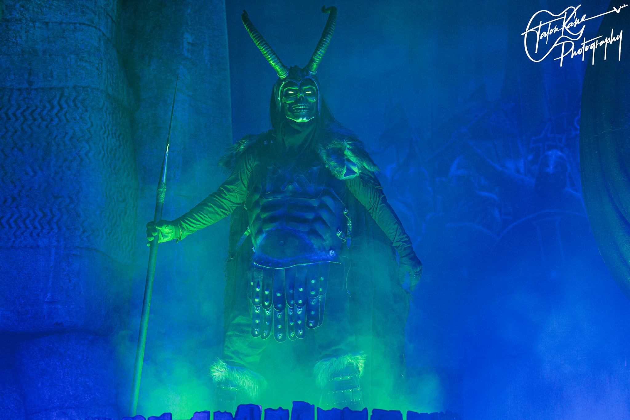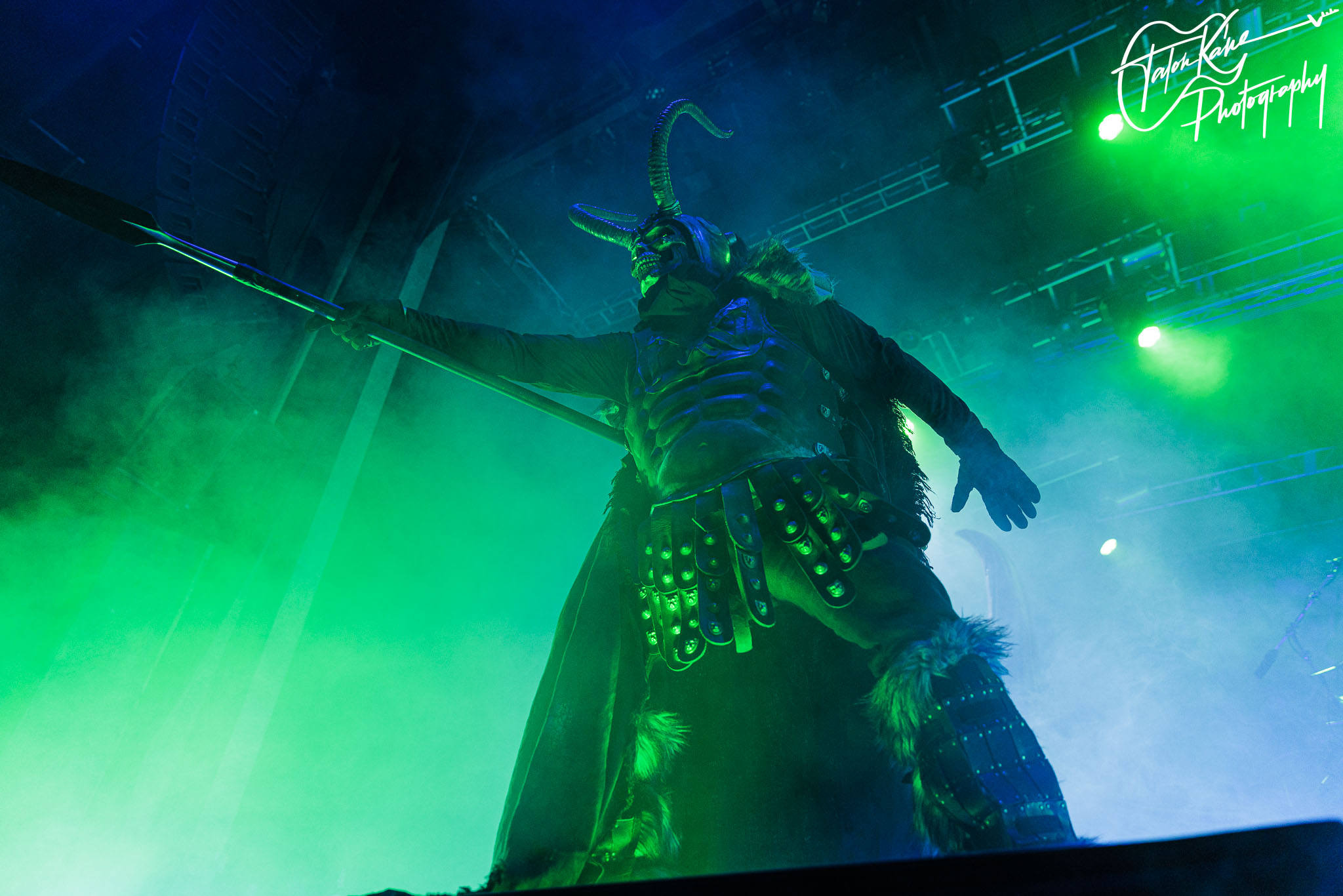 Second, their stage setup is always amazing. Normally, they tour with their massive Viking ship where they perform on it as it sits in the middle of the stage with the dragon headpiece on the front with red eyes and smoke coming out of the nose. This time, they had a massive Viking helmet as Jocke’s drumriser and it was fucking awesome! The eyes were video screens that changed during each song and it was a fine piece of craftsmanship. Besides that, there were two inflatable Viking statues that were massive, an inflatable snake that circled the whole stage, and the fog machine and lights completely added to the atmosphere. But, when you get someone come out to represent Loki during “Deceiver of the Gods” and two people dressed as Vikings literally swordfighting and shield bashing each other on stage during “The Way of the Vikings” you can’t help but get amped up for their shows.