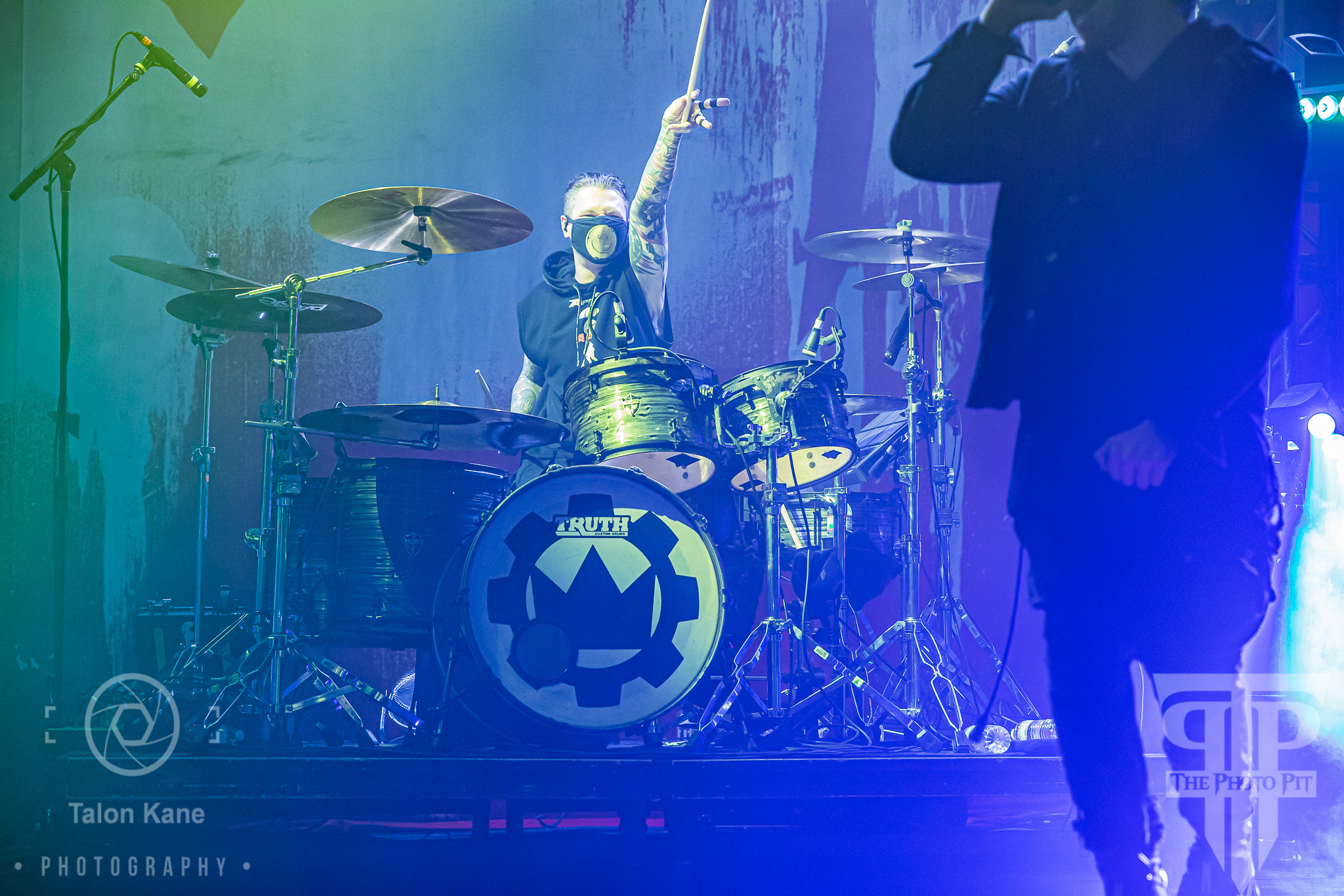Finally, the headliners Crown The Empire were ready to take the stage. The metal band from Dallas, TX formed back in 2010 and released their EP Limitless in 2011. It didn’t take long for the band to be signed to Rise Records and release their first studio album The Fallout in 2012. The band won the Alternative Press Best Breakthrough Band award in 2014. The band released 3 more studio albums, including Sudden Sky, which released on July 19, 2019. Andy Leo (vocals), Brandon Hoover (guitar), Hayden Tree (bass), and Brent Taddie (drums) came to the stage with a huge roar from the crowd. Andy moving around the stage as he sang invigorated the crowd. Brandon and Hayden were also moving around as they played getting the crowd pumped up.