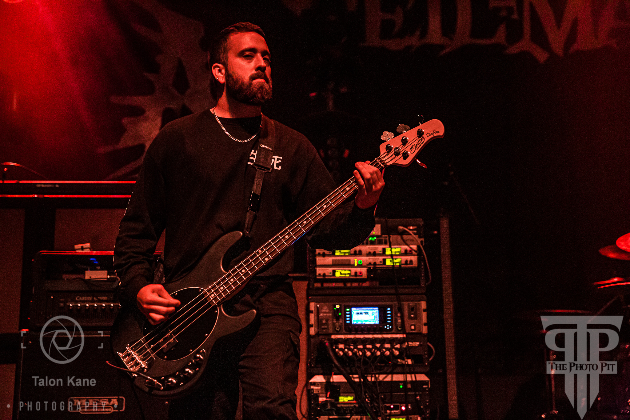 Gideon, the metalcore band from Alabama was next to the stage. Founded in 2008 and with 4 albums under their belts, Daniel McWhorter (vocals), Tyler Riley (guitar), Caleb DeRusha (bass), and Jake Smelley (bass) turned it up a notch. The band rained down the heavy with red lighting pouring down on them. The crowd definitely reacted to the heavier style of music and the mosh pit grew larger as they played on. Daniel encouraged the crowd to keep moving and moshing. I was extremely impressed with their music, stage presence, and Daniel’s vocals were truly headbanging worthy. Gideon appeased the metal gods that night and the crowd threw up horns in appreciation. Daniel thanked the crowd and also asked the crowd to visit them at the merch table. You can find Gideon’s music on their website HERE. The band will be releasing their next album Out of Control on October 11th. You can see a full gallery of photos from their performance HERE.
