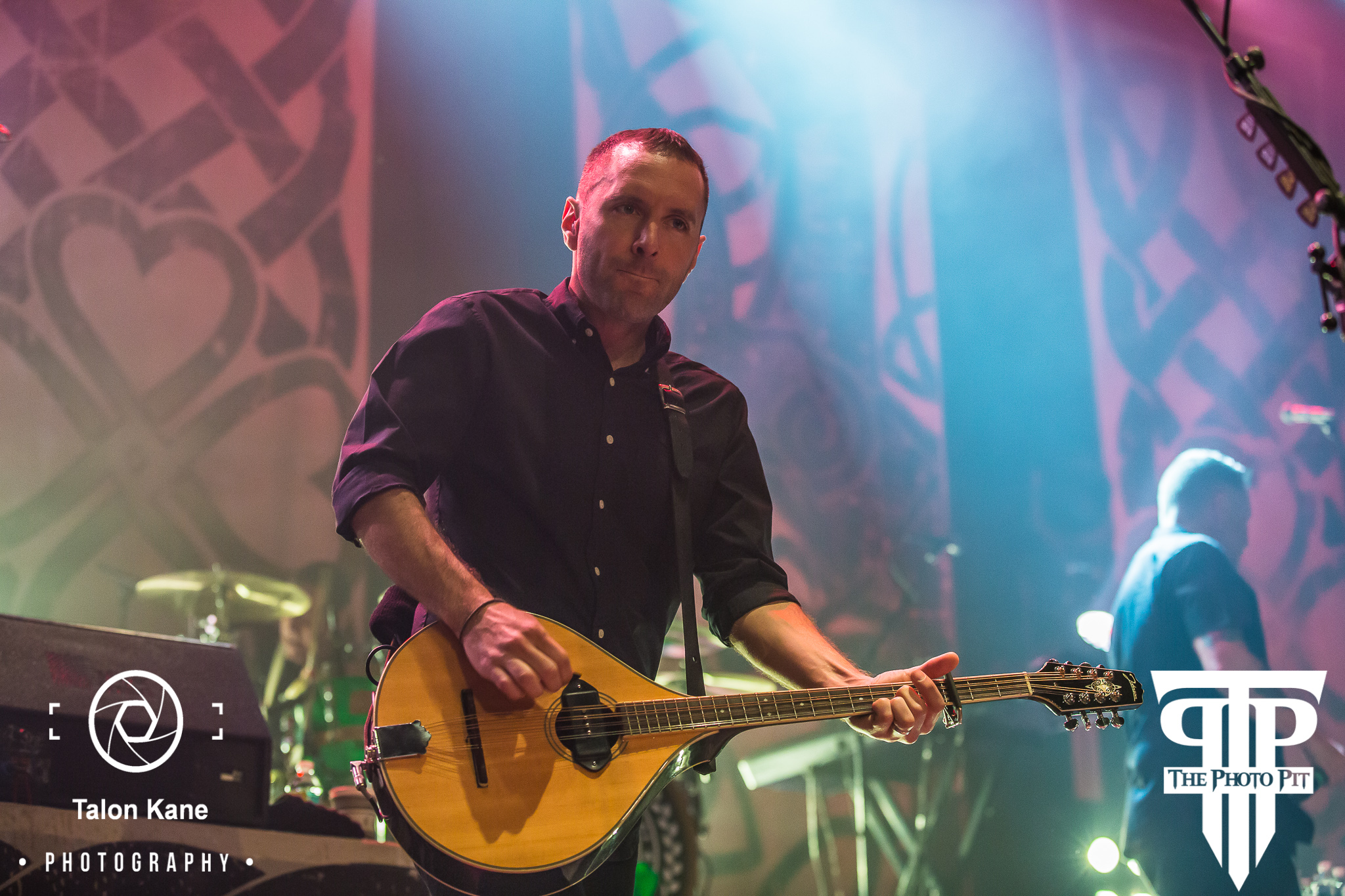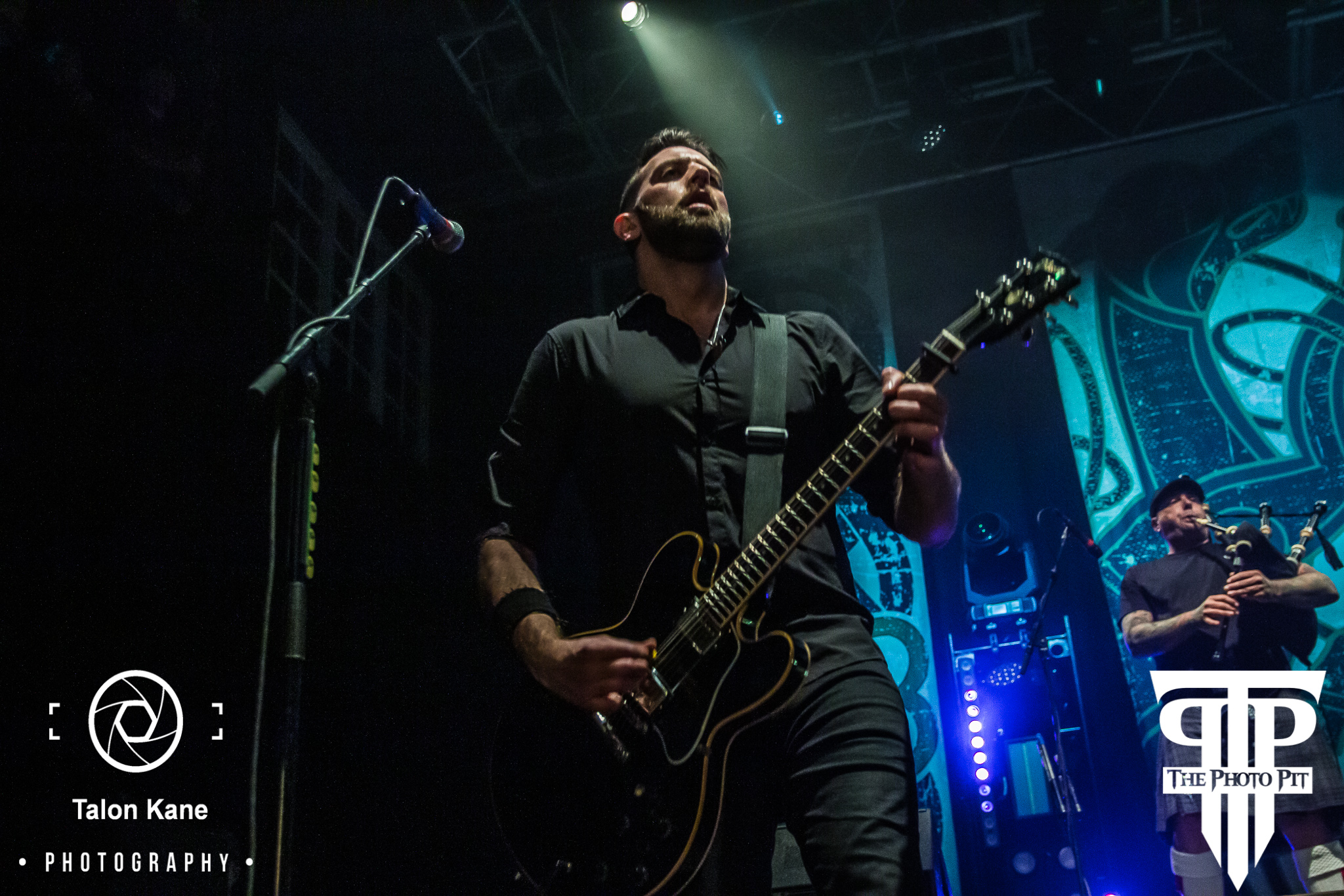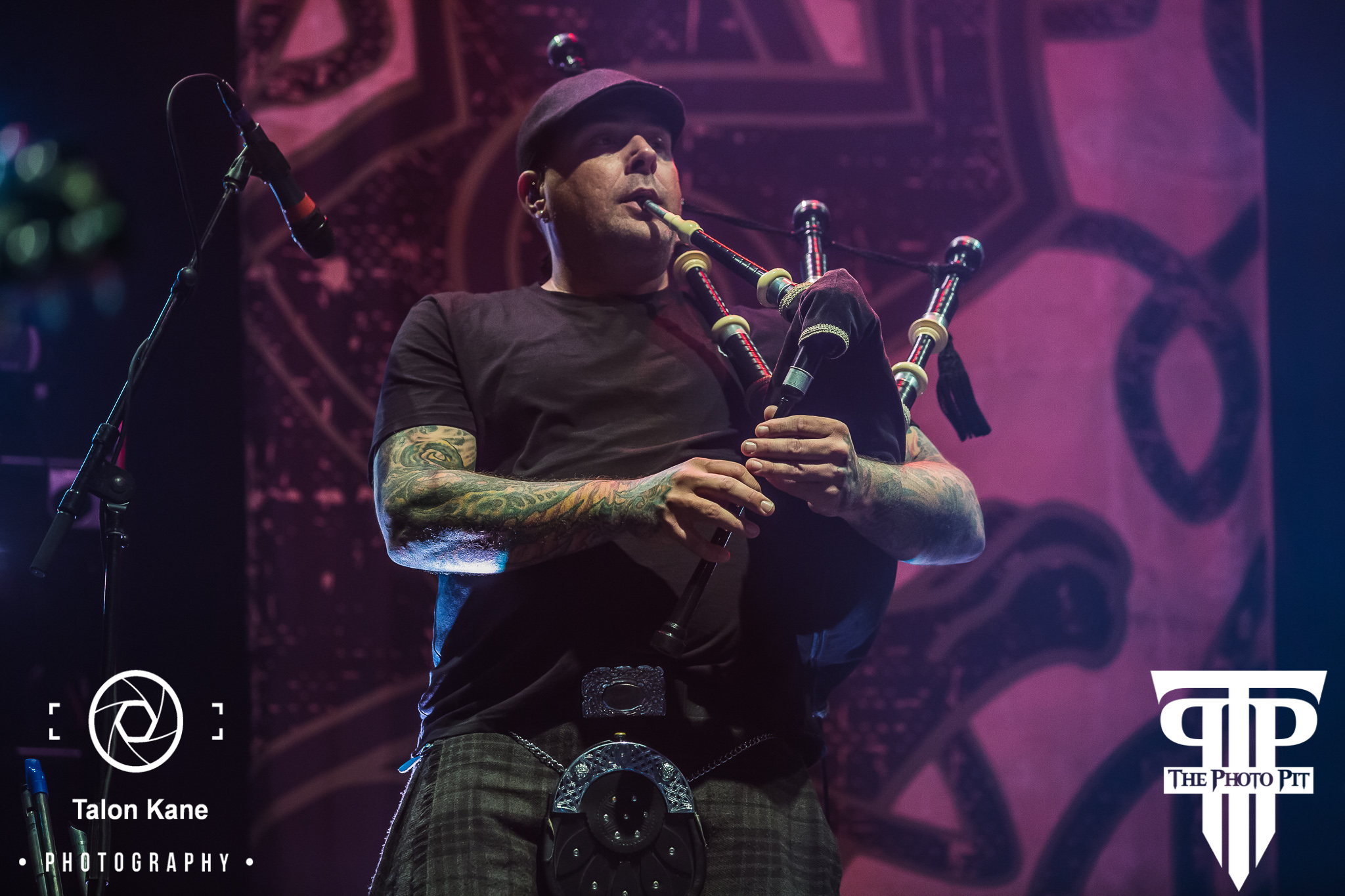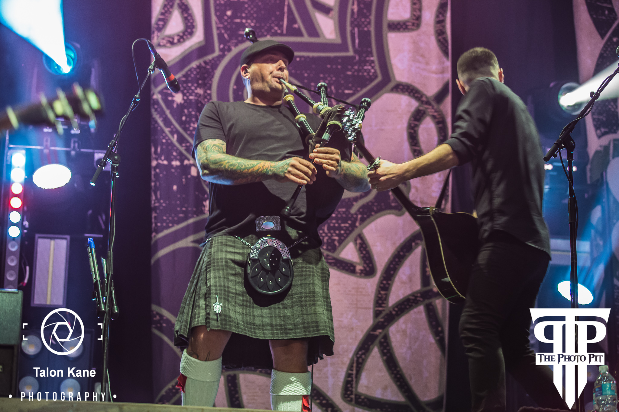 And then, Dropkick Murphys was ready to take the stage. The band from Quincy, MA has been around since 1996 entertaining fans with their punk music. With their debut album Let’s Face It fans immediately were drawn to them and they went on tour with The Mighty Mighty Bosstones to support the album. And that would be just the beginning of a long illustrious ride. The band would release 8 more studio albums with their latest being 11 Short Stories of Pain & Glory released in 2017, be involved in various charities, including The Claddagh Fund, and even get to perform at Gilette Stadium opening for The New England Patriots. And each year the band performs a special show on St. Patrick’s Day in the Boston area. Members Ken Casey (vocals), Al Barr (vocals), Matt Kelly (drums), James Lynch (guitar), Tim Brennan (guitar, mandolin, and many more), Jeff DeRosa (banjo, guitar, mandolin, and many more) walked out on stage with touring member Kevin Rheault (bass) to other touring member Lee Forshner playing the bagpipes.