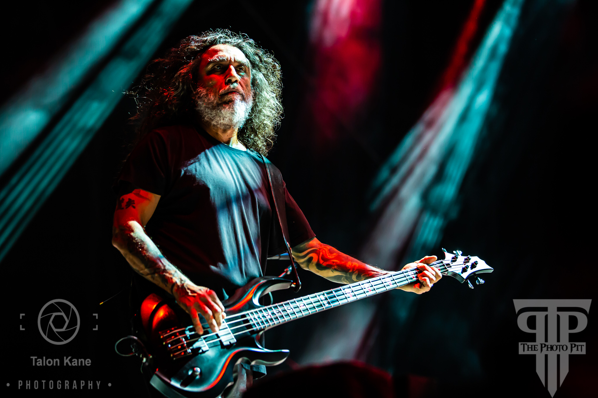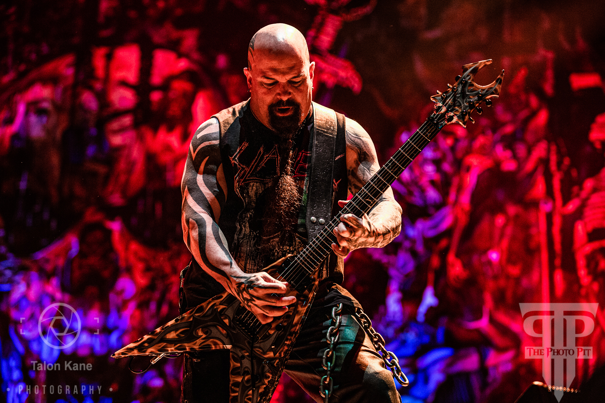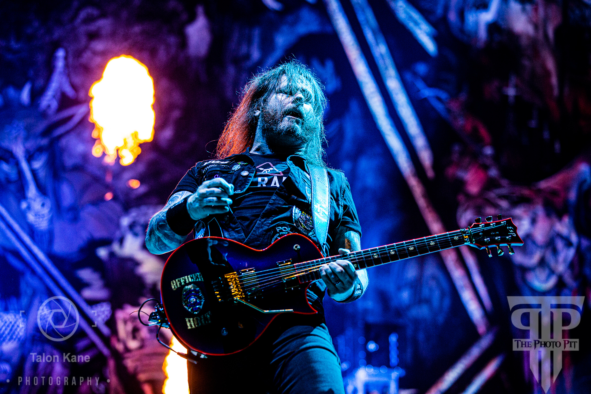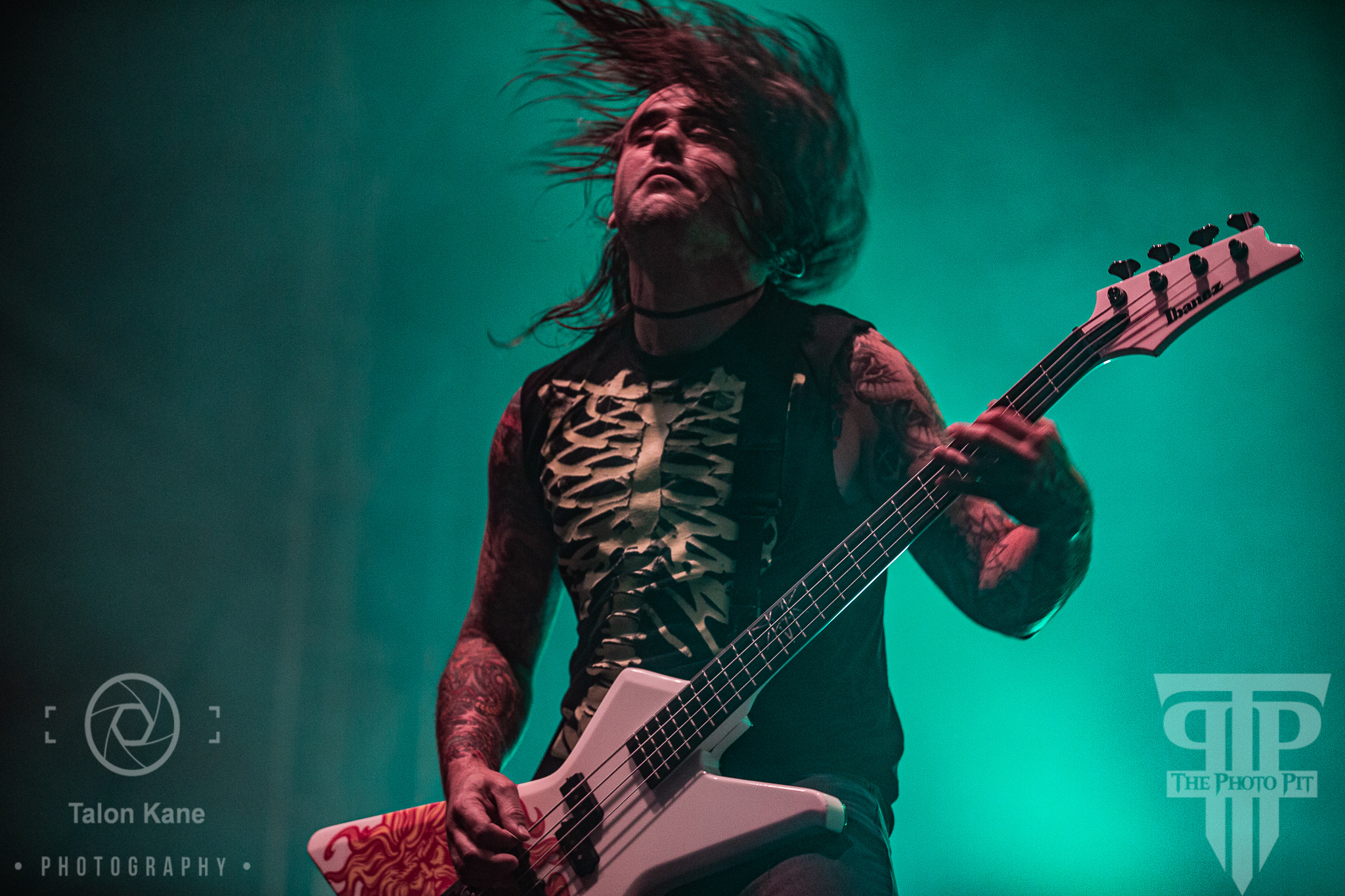 After you have Anthrax perform it’s hard to top. Yet, EXIT 111 set up a lineup that day which did just that. Back at the Heaven stage, thousands were already packed in and waiting for another legendary thrash band, Slayer! The California metal band has been around since 1981 and unfortunately made the decision to retire. Though a sad decision, the band has made their Final World Tour one for the ages trying to hit as many cities as they can before calling it quits. I saw them in Orlando, FL in 2018 on this tour, so I was thrilled to get another chance to photograph them. The stage was covered in a drape and when the music started four white crosses appeared on the drape, which slowly turned upside down. The Slayer logo then appeared before they pulled down the drape and the band was ripping into “Repentless”. And this crowd went insane. Tom Araya (vocals, bass), Kerry King (guitar), Gary Holt (guitar), and Paul Bostaph (drums) were energized by the crowd’s reaction and lived up to the hype everyone expected. Tom stood behind the mic belting out the lyrics, and Gary and Kerry were ripping out the guitar riffs with such precision and speed. Paul sat behind his massive drum set smashing out sounds faster than I ever heard. Slayer was on fire and they brought the pyro with them too. It was a phenomenal appearance that night and was listed as their last for the state of Tennesse. If this is the case, Slayer left it all out on the stage for the fans.