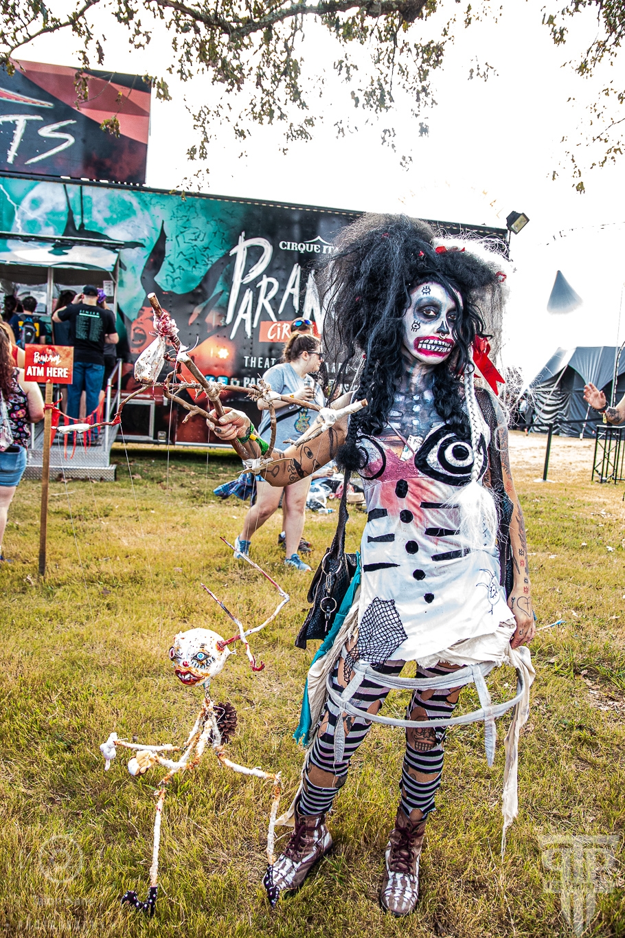 Before getting a chance to see any of the artists playing, I walked around the grounds to get my bearings. There were three stages at the festival: Heaven, which was considered the headlining stage, Hell, and Rise Above. The Rise Above stage is connected with Seether’s Rise Above charity. The festival was donating $1.00 from every ticket sold to Suicide Awareness Voices of Education (SAVE). What caught my eye though was the line of people gathered up to get tickets to see the Paranomal Cirque. A mysterious show that was part freak show and part circus and it definitely had the EXIT 111 fans’ attention. The lines were huge and cast members walked about interacting with the fans. And speaking of lines, the lines for merchandise were massive. Fans were dumping hundreds of dollars to pick up their own EXIT 111 shirt or a shirt from one of their favorite bands playing this weekend. And while people waited in the merch line, they watched motocross motorcycles performing feats of aerial acrobatics.