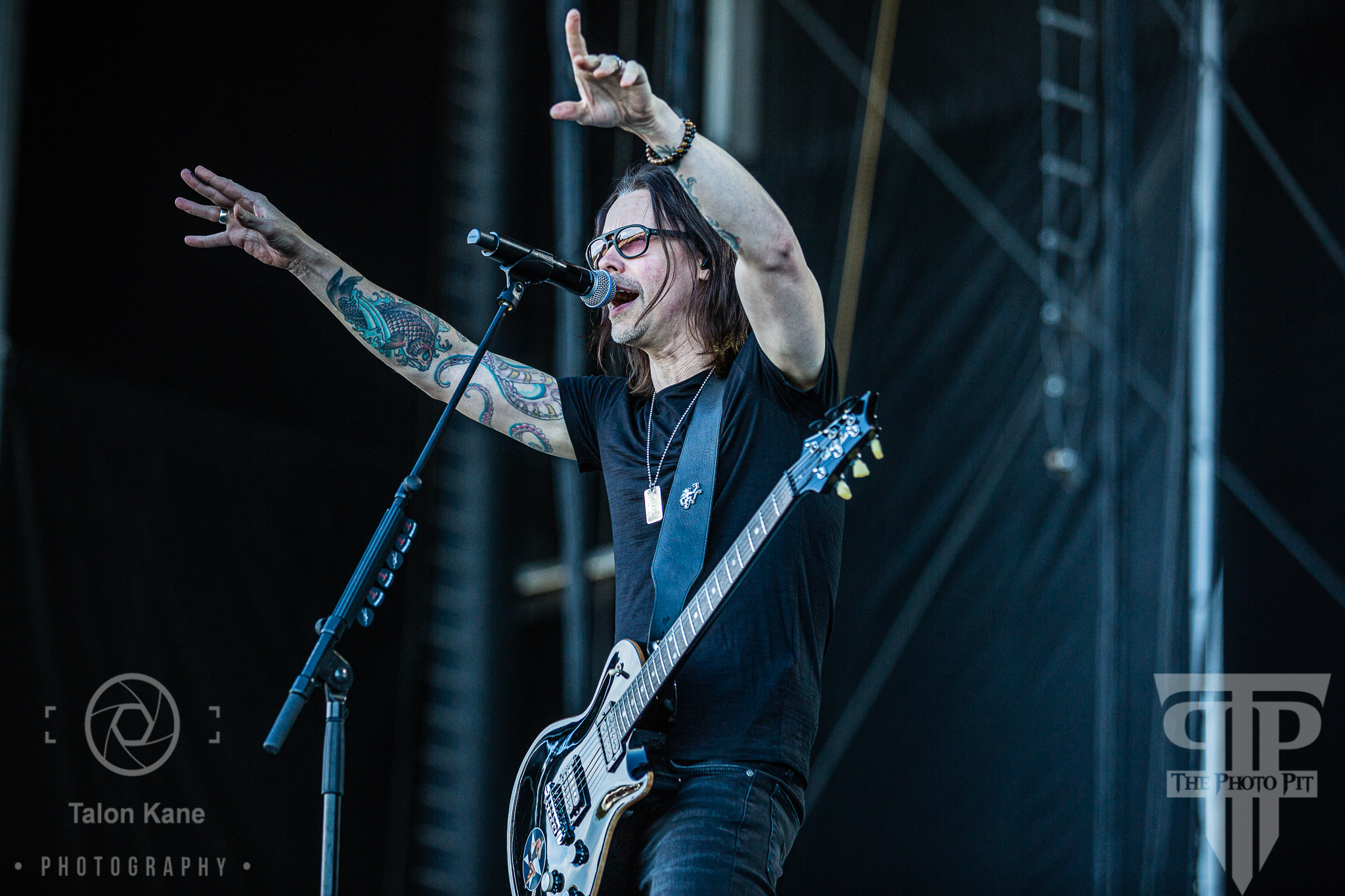 From here it was over to the Heaven stage for one of my favorite artists, Alter Bridge. The band primarily from my current residence of Orlando, FL has rocked the radio airwaves since 2004. With great music and live performances, the band quickly elevated into fan favorites. The band is now on tour supporting the release of their sixth studio album, Walk The Sky, which comes out on October 18, 2019. The moment Myles Kennedy (vocals, guitar), Mark Tremonti (guitar), Brian Marshall (bass), and Scott Phillips (drums) walked out on stage, the EXIT 111 crowd went nuts. They sounded amazing, as always, and played new music “Wouldn’t You Rather” and “Pay No Mind” from Walk The Sky. With Myles primarily standing behind the microphone and playing while Mark ripped out guitar notes in technically sound fashion. It was an amazing set that also included “Isolation” (one of my favorite songs), “Rise Today” (another favorite), “Blackbird”, and “Metalingus”. Alter Bridge is on tour with both Skillet and Dirty Honey and I’m looking forward to seeing them again at the end of October in Orlando.