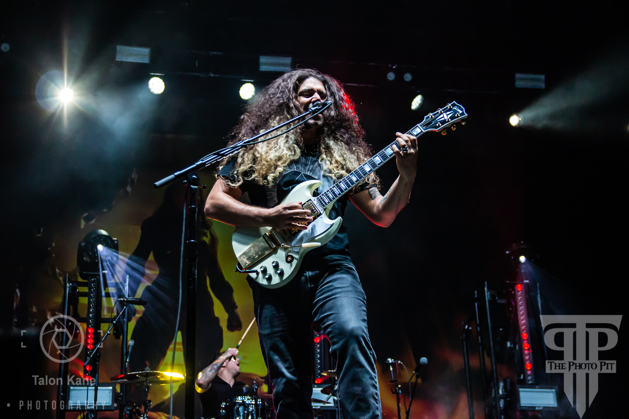 The next band I caught that night was one I’ve never seen before live, Coheed and Cambria. The band from Nyack, NY formed in 1995 and released three EPs before releasing their first studio album in 2002. The majority of their albums, with the exception of the eighth studio album, focus on a science fiction story known as The Armory Wars. The two main characters are Coheed Kilgannon and Cambria Kilgannon in their struggle against the Archmage. Having never seen the band I wasn’t sure what to expect and I was pleasantly surprised. Besides the music being truly amazing, their backdrop and lights during their performance were truly vivid. By far the most colorful light shows I saw at the festival. And their crowd was not only massive they were dedicated Coheed and Cambria fans. They knew every lyric to the songs sung and when Claudio Sanchez (vocals, guitar) stopped singing and pointed at the crowd, the crowd would finish the lyrics loudly. I was blown away with their set that night. Their setlist included “The Dark Sentencer”, “A Favor House Atlantic”, and “Welcome Home”.