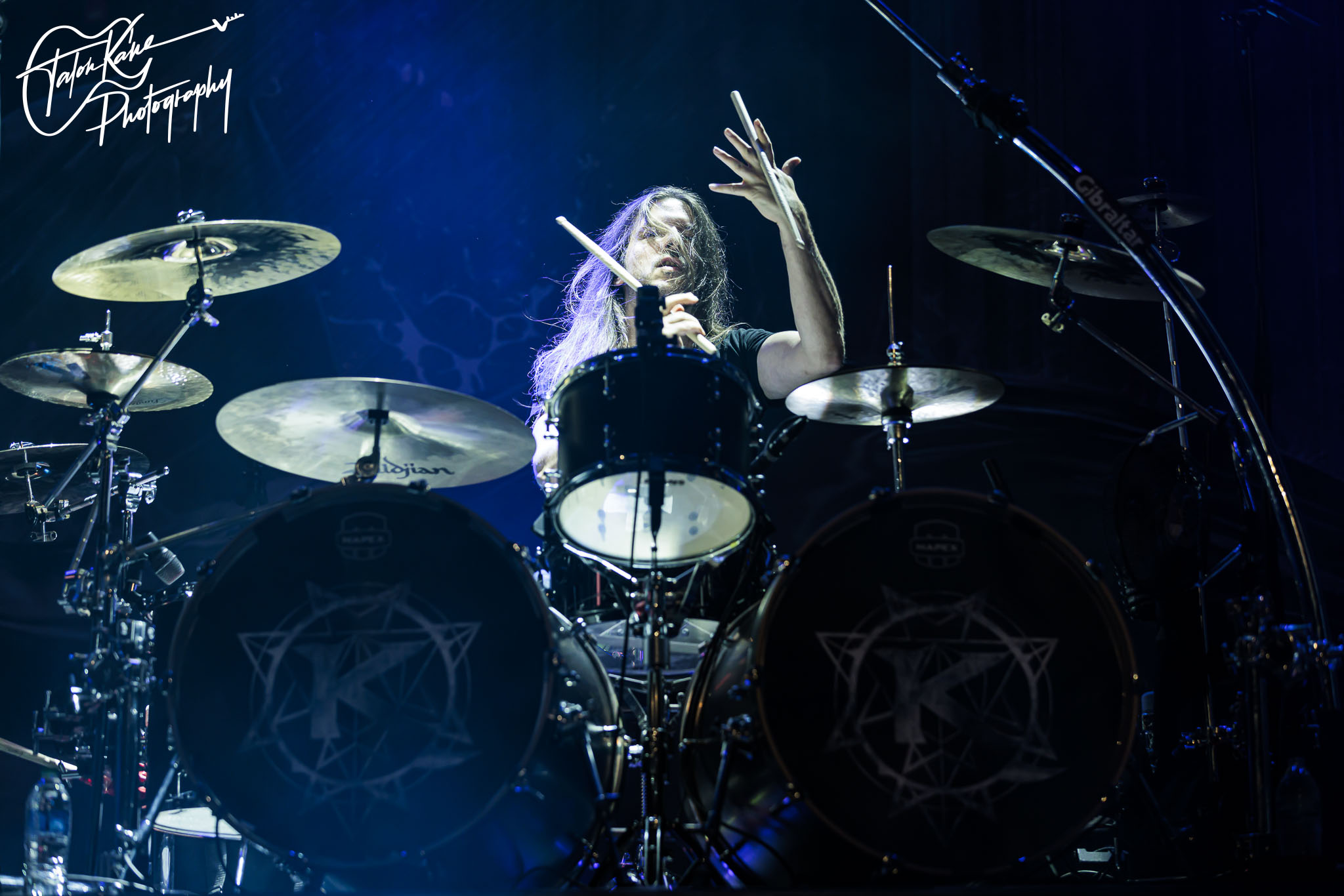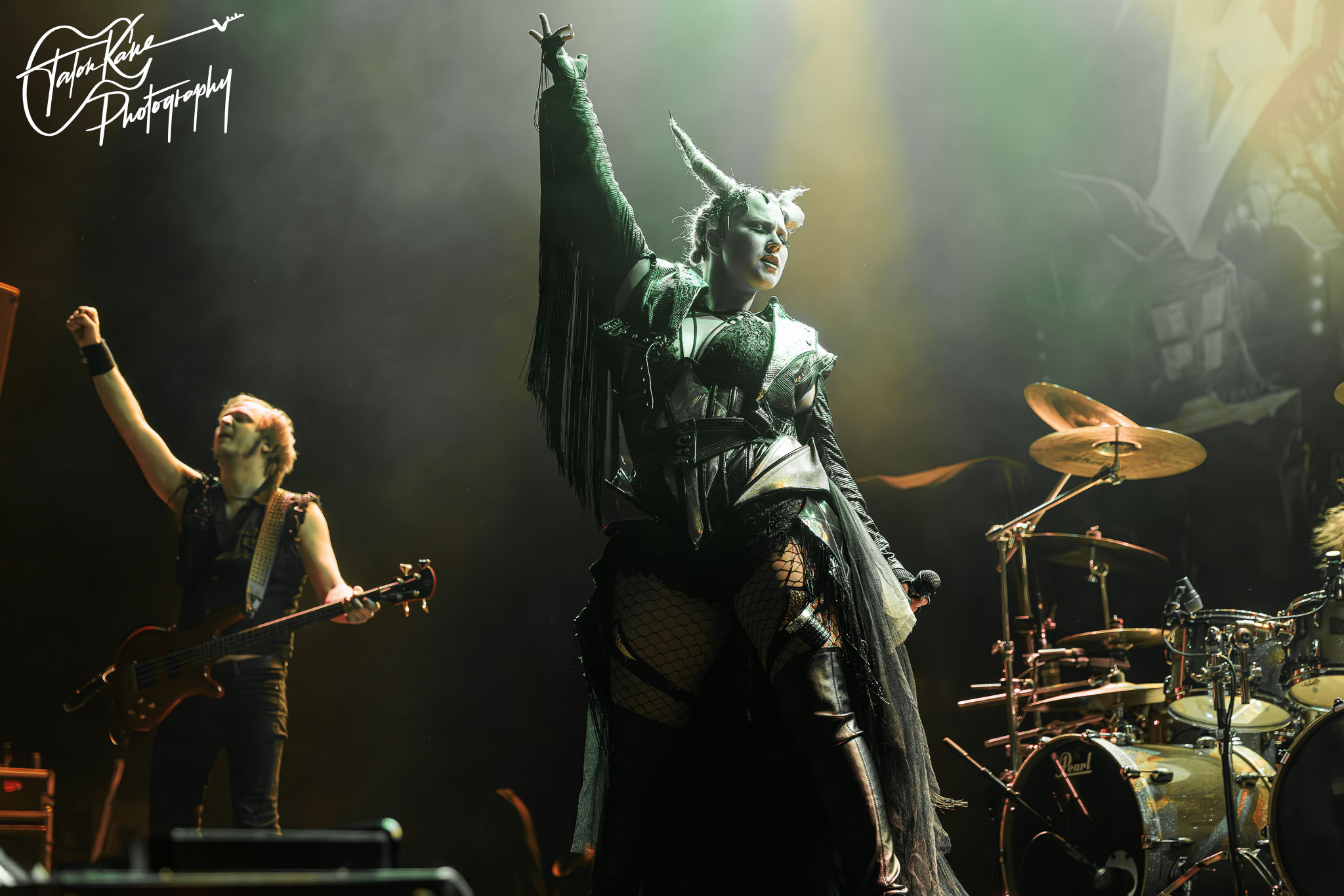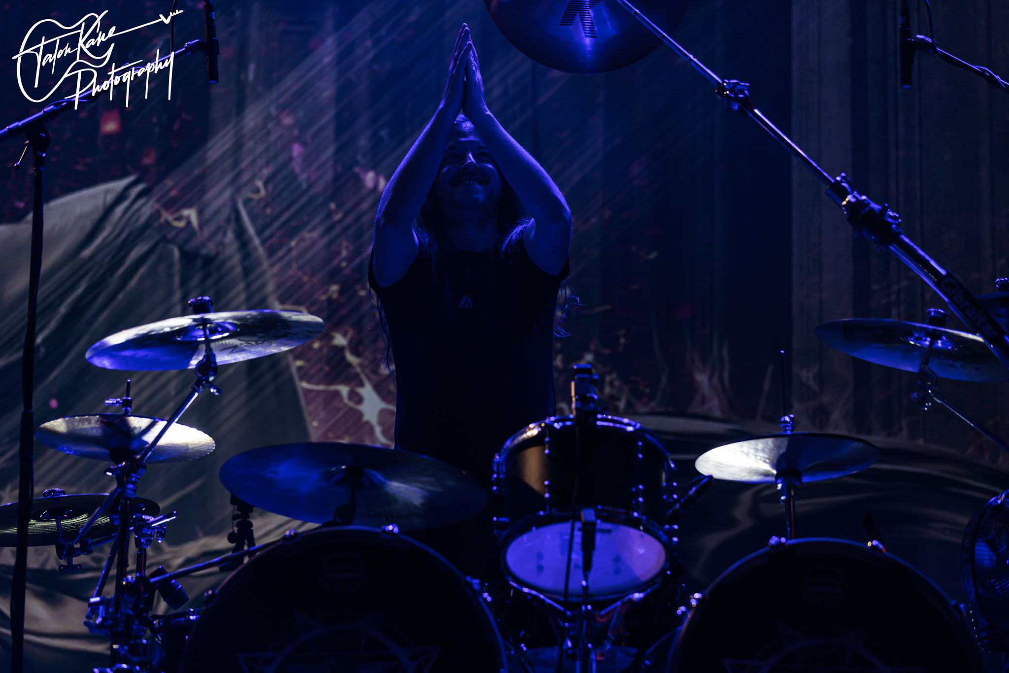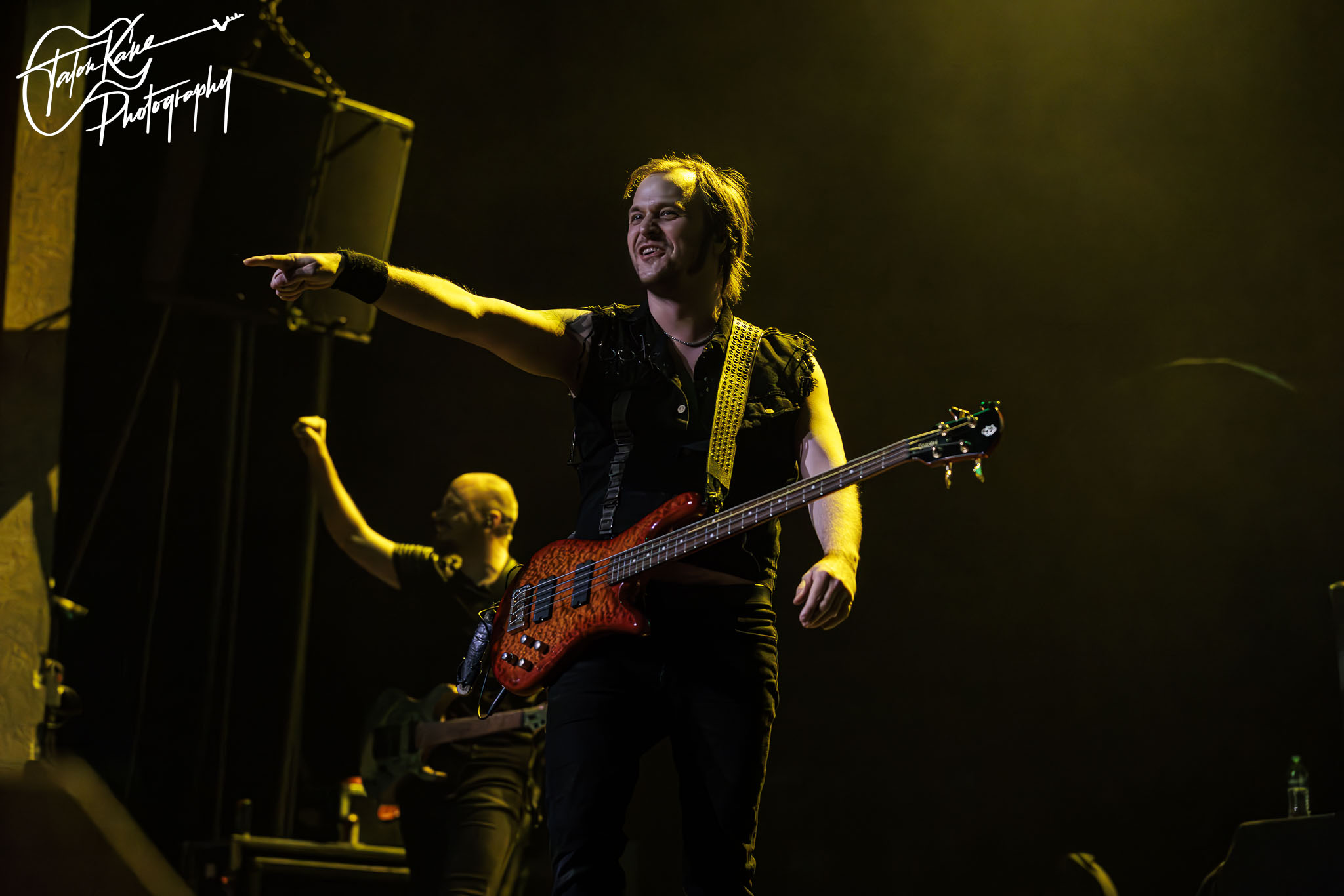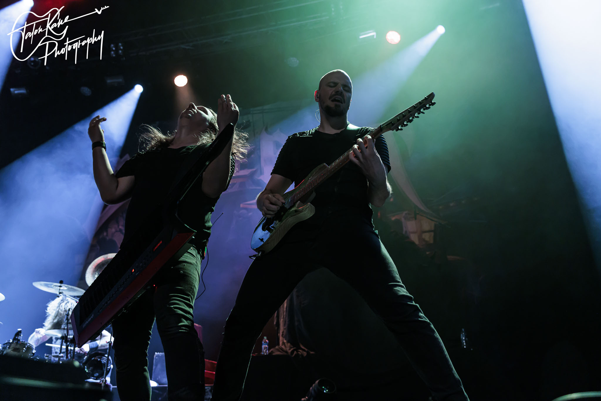 Kamelot plays such beautiful metal music and Tommy’s vocals are so breathtaking and chilling. What you don’t get to see when listening to their albums instead of seeing them live is the theatrical elements they add to their performance. With a beautiful massive backdrop of the Awakening album cover, a beautiful platformed stage, and boxes in the photo pit so Tommy to get closer to the crowd, Kamelot truly goes all out to make their performance an experience for their fans. Alex on the drums is truly incredible, especially being the newest member of the band. He even had a drum solo that was absolutely insane and also paid tribute to Neal Peart, former drummer of Rush, when he included performing the drum portion of “Tom Sawyer”. Oliver, described as the wizard behind the keys, is a master of his craft and also had a small solo that night showing off exactly why keyboards are still so relevant in music, especially symphonic metal. Sean is a maniac on the stage and throws down while he plays including some jumps and headbanging with his hair flying everywhere. Thomas keeps mainly stoic as he performs, and he does so with just such beautiful guitar work. He truly makes the guitar sing through every note he shreds. And what can I say about Tommy’s vocals other than “Wow!” His voice is crystal clear and the notes he reaches at times are truly incredible. The addition of Melissa Bonny for this tour was truly a bonus to hear such amazing harmonies between her and Tommy, plus the theatrics they performed were truly hair-raising.