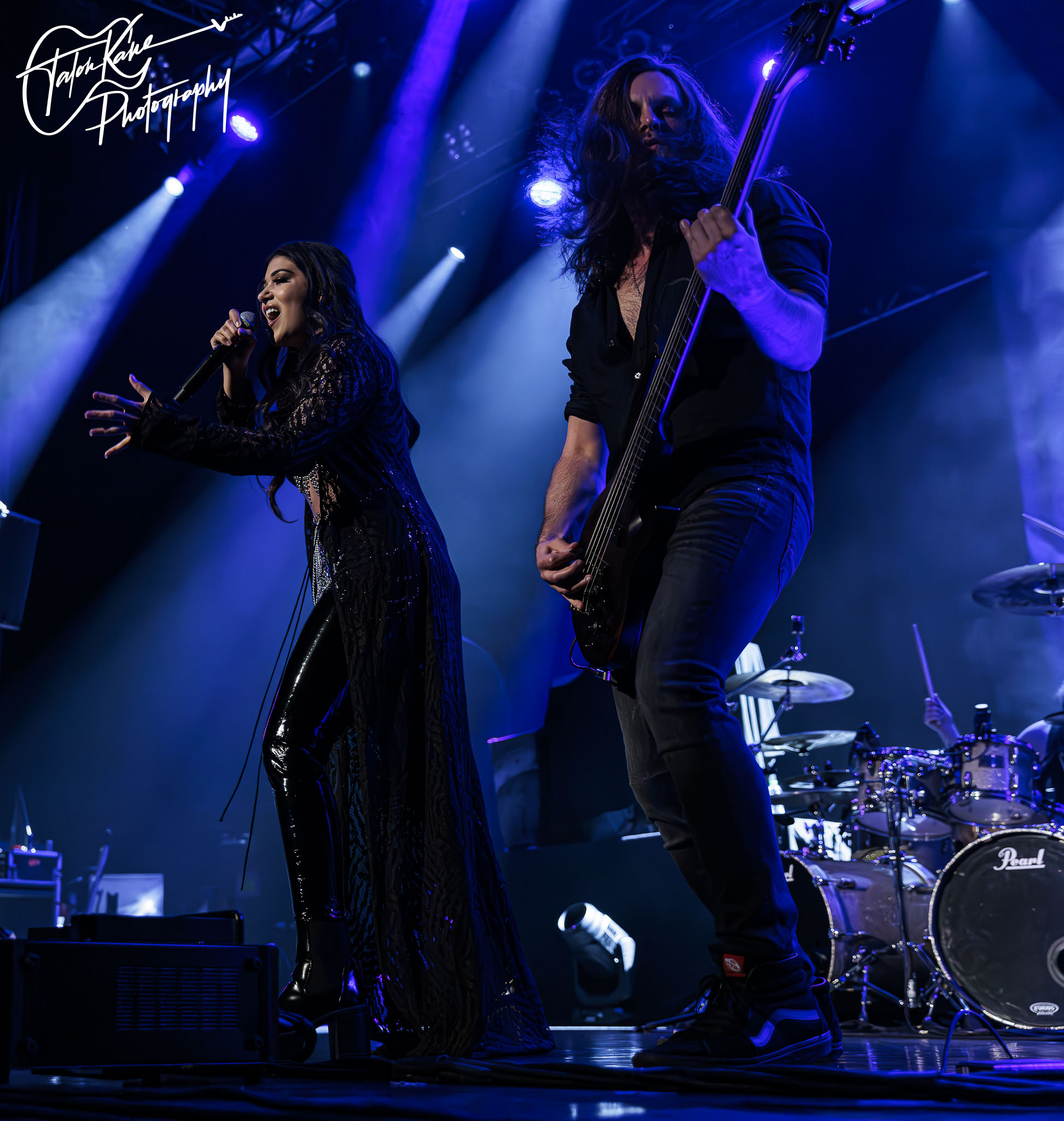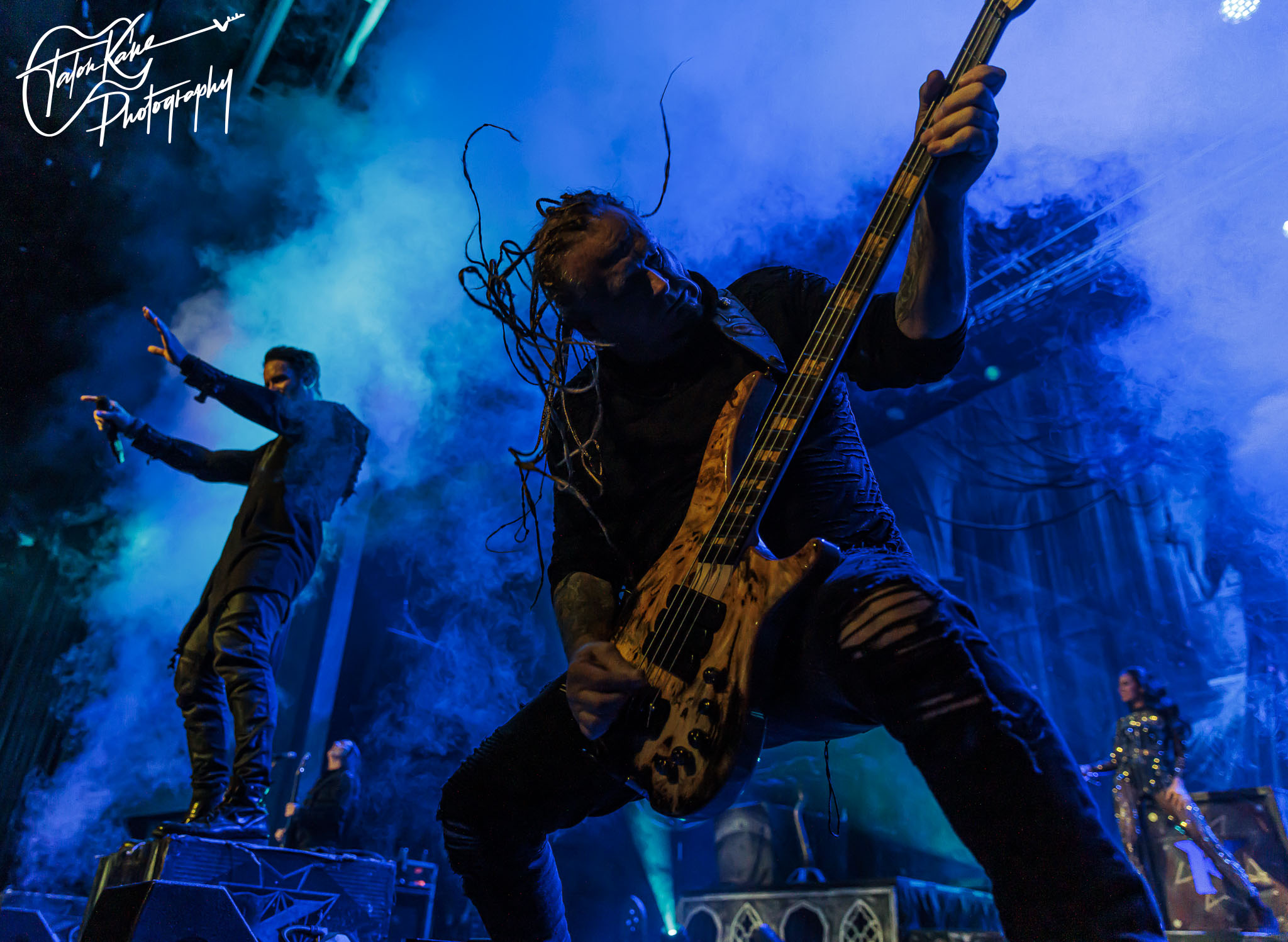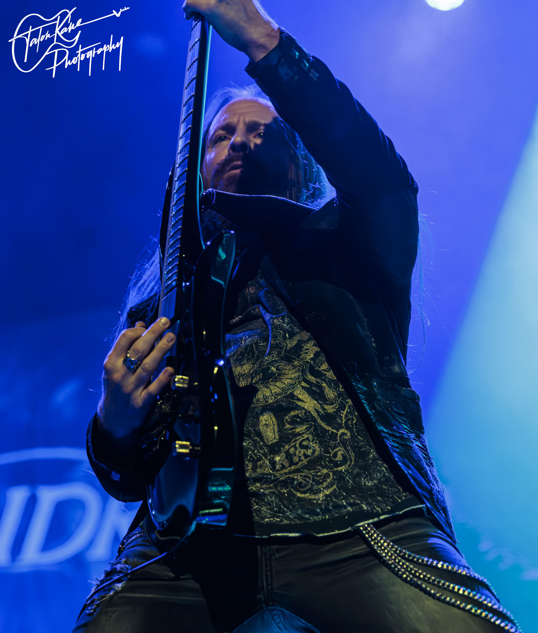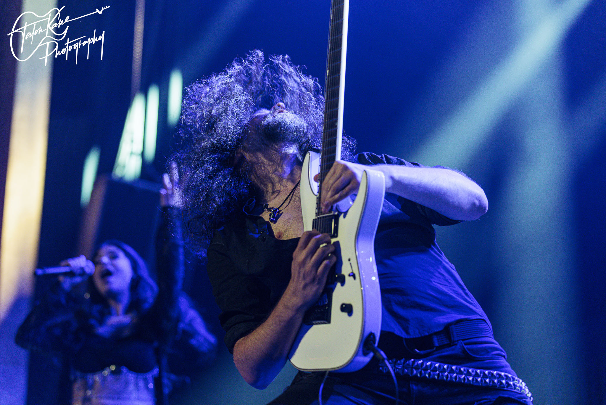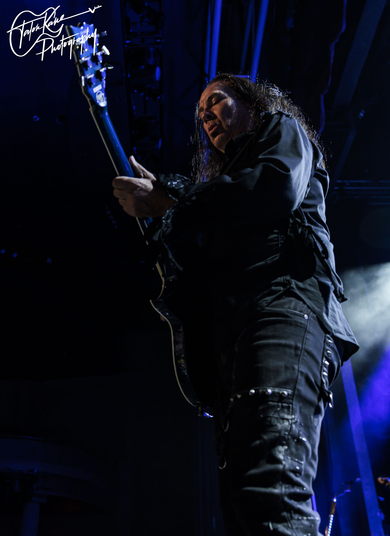 Kamelot plays such beautiful metal music and Tommy’s vocals are so breathtaking and chilling. What you don’t get to see when listening to their albums instead of seeing them live is the theatrical elements they add to their performance. With a beautiful massive backdrop of the Awakening album cover, a beautiful platformed stage, and boxes in the photo pit so Tommy to get closer to the crowd, Kamelot truly goes all out to make their performance an experience for their fans. Alex on the drums is truly incredible, especially being the newest member of the band. He even had a drum solo that was absolutely insane and also paid tribute to Neal Peart, former drummer of Rush, when he included performing the drum portion of “Tom Sawyer”. Oliver, described as the wizard behind the keys, is a master of his craft and also had a small solo that night showing off exactly why keyboards are still so relevant in music, especially symphonic metal. Sean is a maniac on the stage and throws down while he plays including some jumps and headbanging with his hair flying everywhere. Thomas keeps mainly stoic as he performs, and he does so with just such beautiful guitar work. He truly makes the guitar sing through every note he shreds. And what can I say about Tommy’s vocals other than “Wow!” His voice is crystal clear and the notes he reaches at times are truly incredible. The addition of Melissa Bonny for this tour was truly a bonus to hear such amazing harmonies between her and Tommy, plus the theatrics they performed were truly hair-raising.