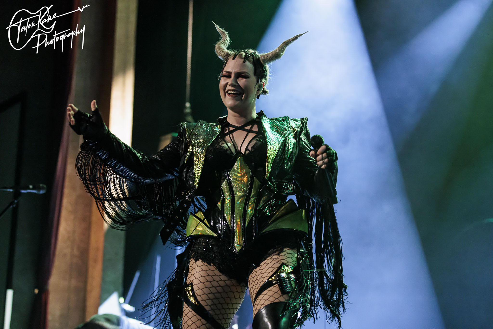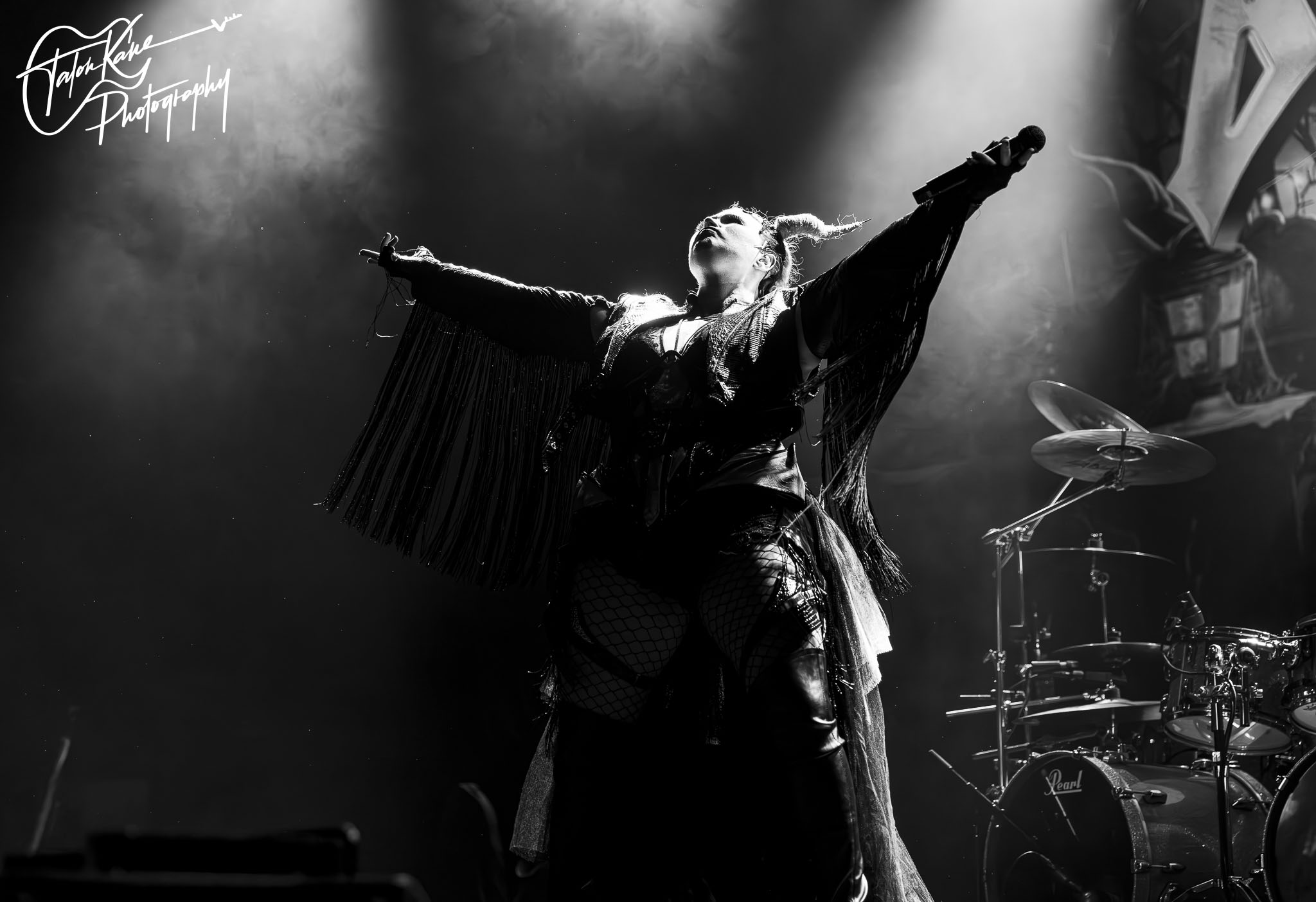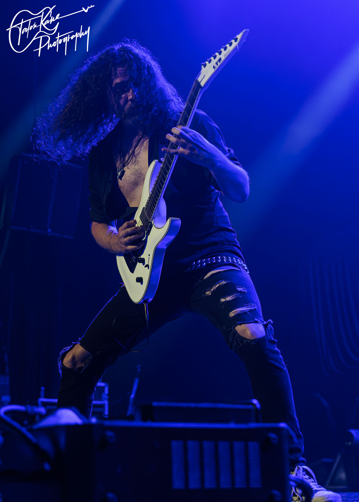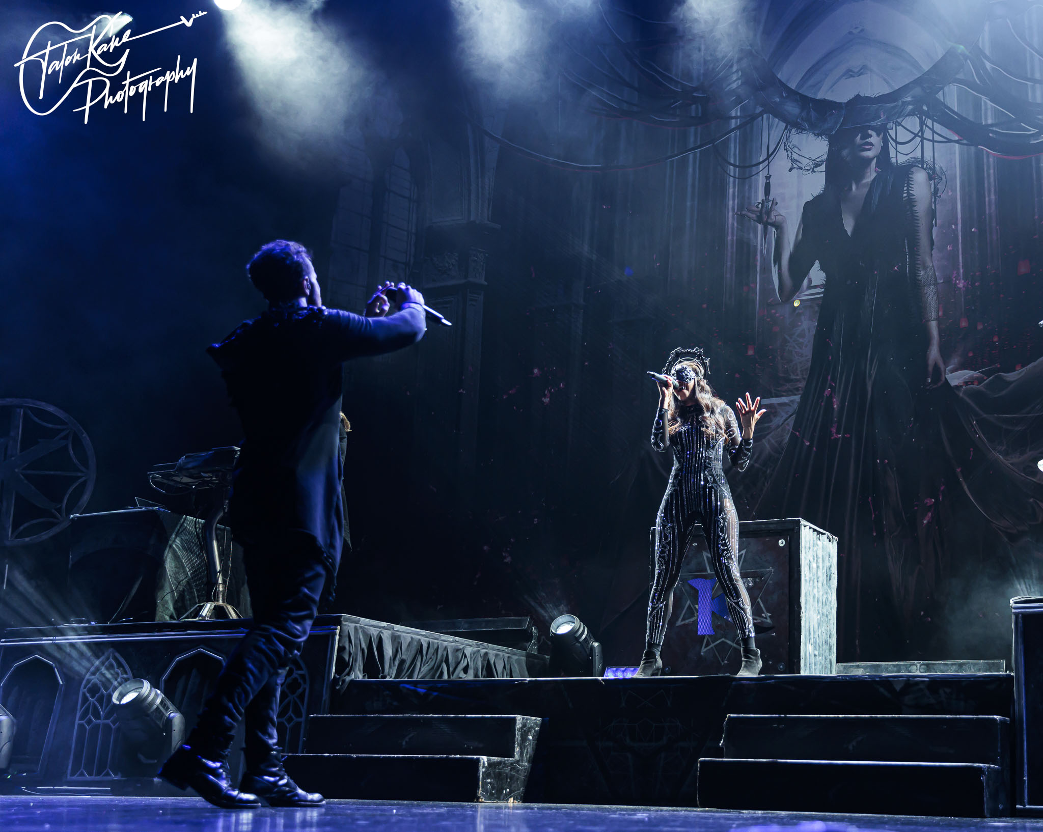 Kamelot plays such beautiful metal music and Tommy’s vocals are so breathtaking and chilling. What you don’t get to see when listening to their albums instead of seeing them live is the theatrical elements they add to their performance. With a beautiful massive backdrop of the Awakening album cover, a beautiful platformed stage, and boxes in the photo pit so Tommy to get closer to the crowd, Kamelot truly goes all out to make their performance an experience for their fans. Alex on the drums is truly incredible, especially being the newest member of the band. He even had a drum solo that was absolutely insane and also paid tribute to Neal Peart, former drummer of Rush, when he included performing the drum portion of “Tom Sawyer”. Oliver, described as the wizard behind the keys, is a master of his craft and also had a small solo that night showing off exactly why keyboards are still so relevant in music, especially symphonic metal. Sean is a maniac on the stage and throws down while he plays including some jumps and headbanging with his hair flying everywhere. Thomas keeps mainly stoic as he performs, and he does so with just such beautiful guitar work. He truly makes the guitar sing through every note he shreds. And what can I say about Tommy’s vocals other than “Wow!” His voice is crystal clear and the notes he reaches at times are truly incredible. The addition of Melissa Bonny for this tour was truly a bonus to hear such amazing harmonies between her and Tommy, plus the theatrics they performed were truly hair-raising.