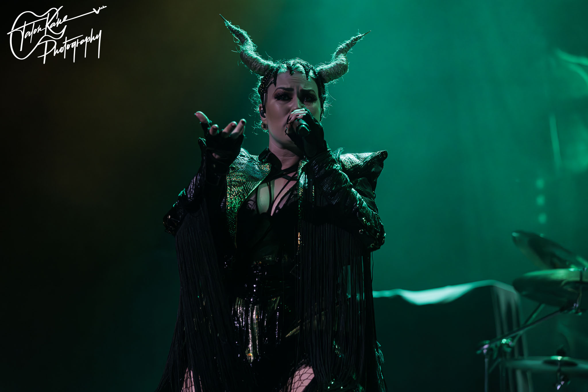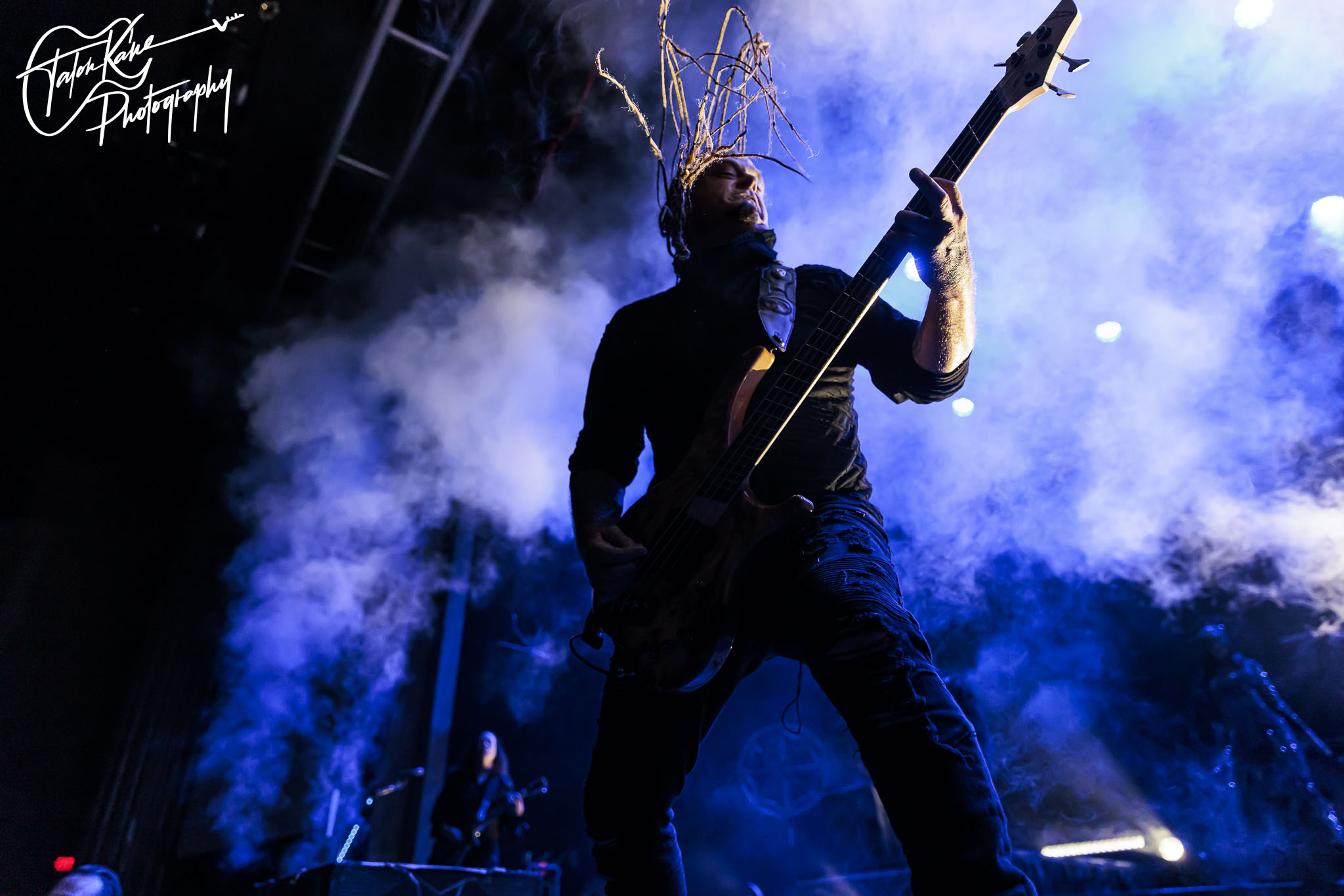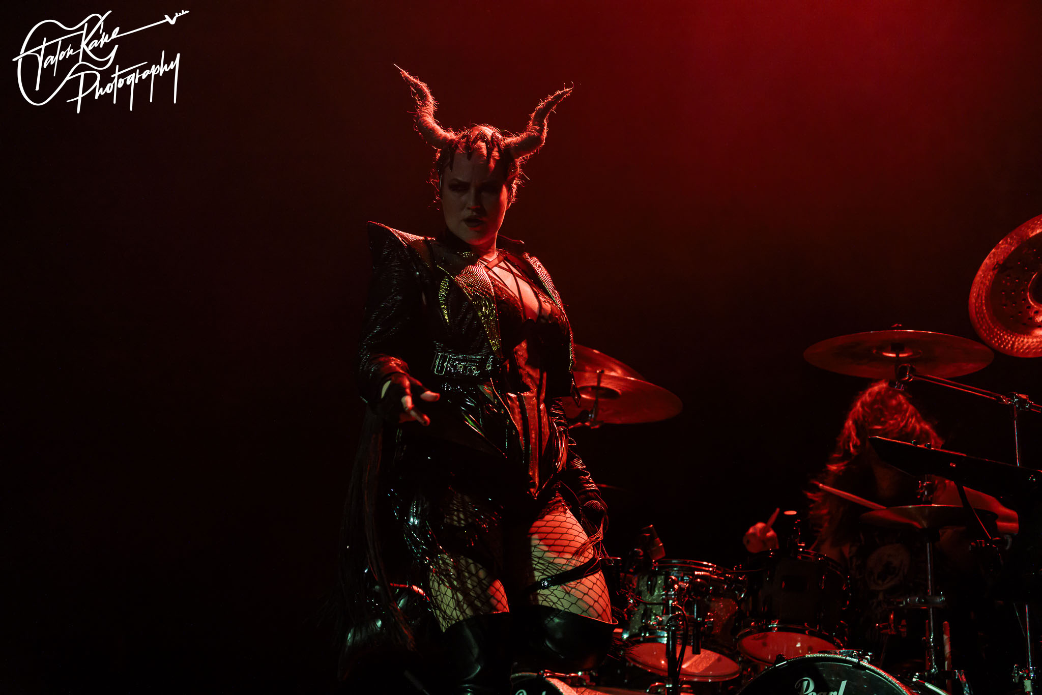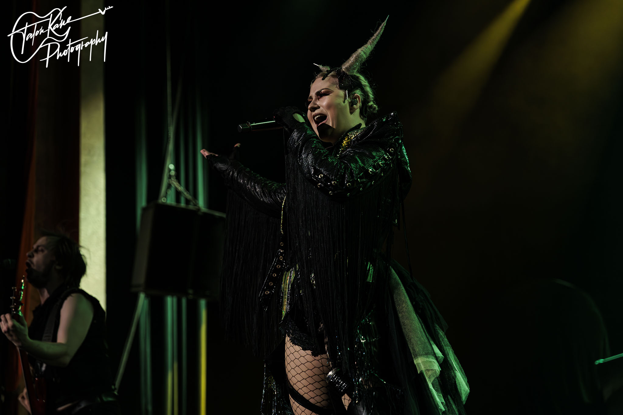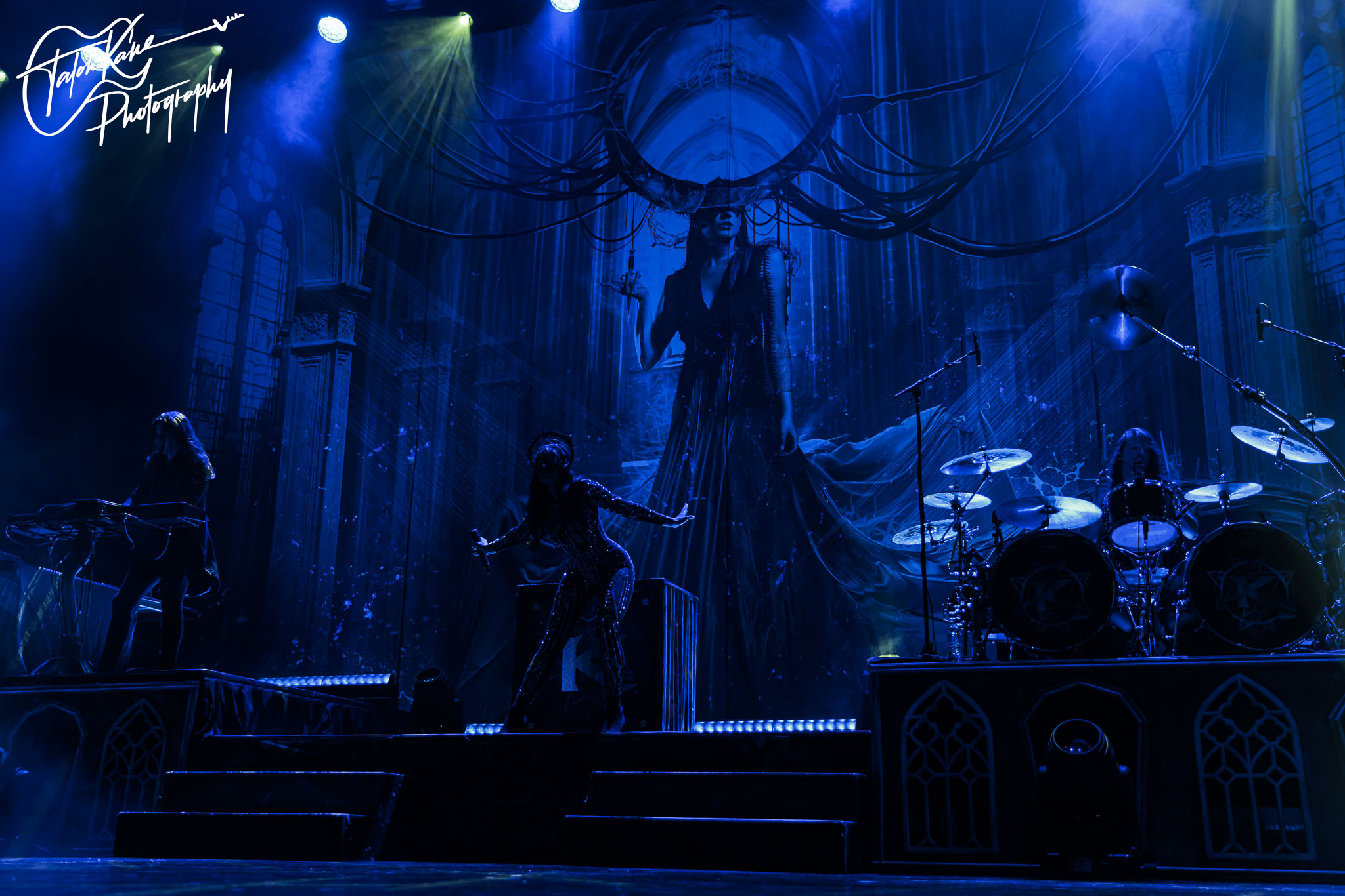 Kamelot plays such beautiful metal music and Tommy’s vocals are so breathtaking and chilling. What you don’t get to see when listening to their albums instead of seeing them live is the theatrical elements they add to their performance. With a beautiful massive backdrop of the Awakening album cover, a beautiful platformed stage, and boxes in the photo pit so Tommy to get closer to the crowd, Kamelot truly goes all out to make their performance an experience for their fans. Alex on the drums is truly incredible, especially being the newest member of the band. He even had a drum solo that was absolutely insane and also paid tribute to Neal Peart, former drummer of Rush, when he included performing the drum portion of “Tom Sawyer”. Oliver, described as the wizard behind the keys, is a master of his craft and also had a small solo that night showing off exactly why keyboards are still so relevant in music, especially symphonic metal. Sean is a maniac on the stage and throws down while he plays including some jumps and headbanging with his hair flying everywhere. Thomas keeps mainly stoic as he performs, and he does so with just such beautiful guitar work. He truly makes the guitar sing through every note he shreds. And what can I say about Tommy’s vocals other than “Wow!” His voice is crystal clear and the notes he reaches at times are truly incredible. The addition of Melissa Bonny for this tour was truly a bonus to hear such amazing harmonies between her and Tommy, plus the theatrics they performed were truly hair-raising.