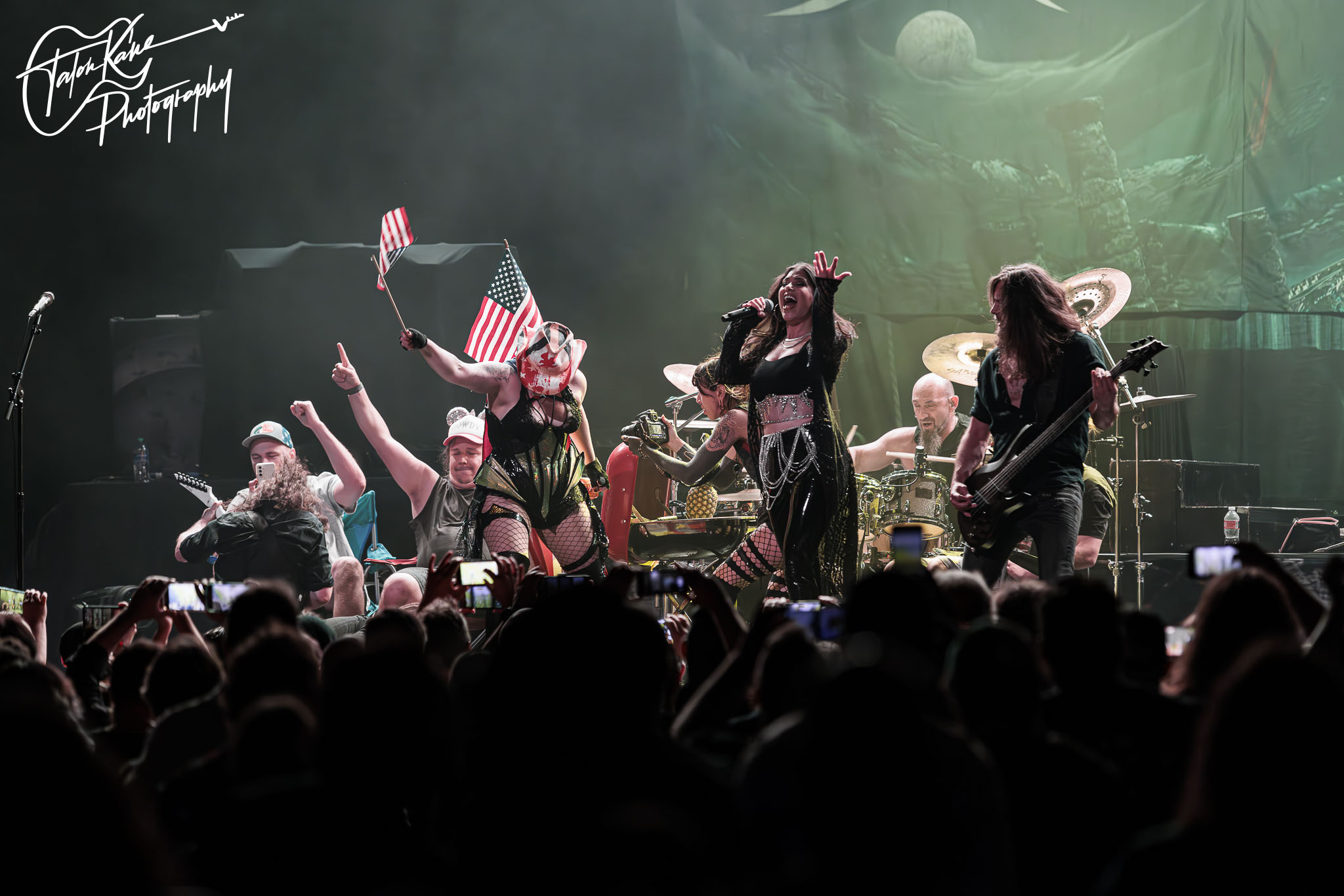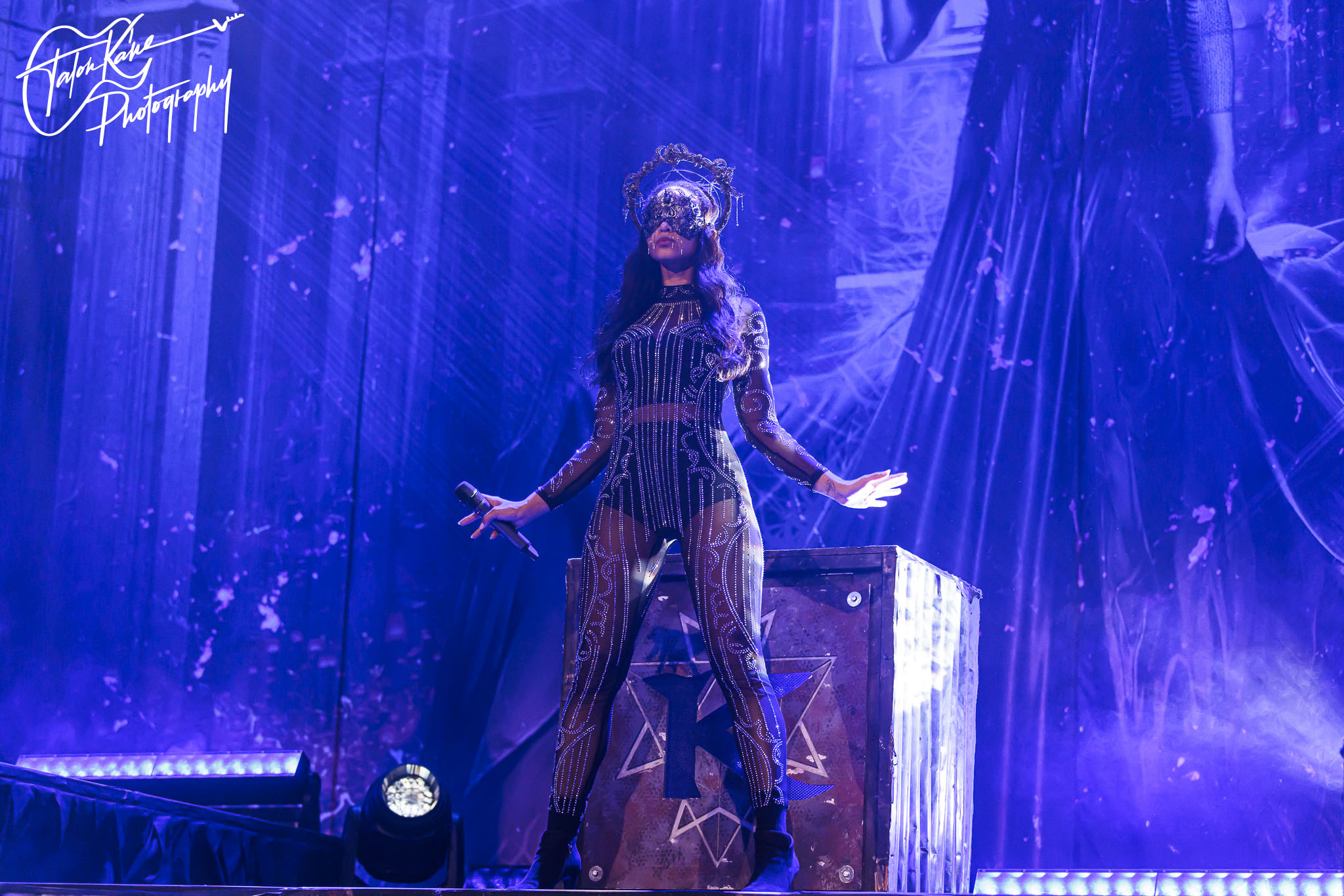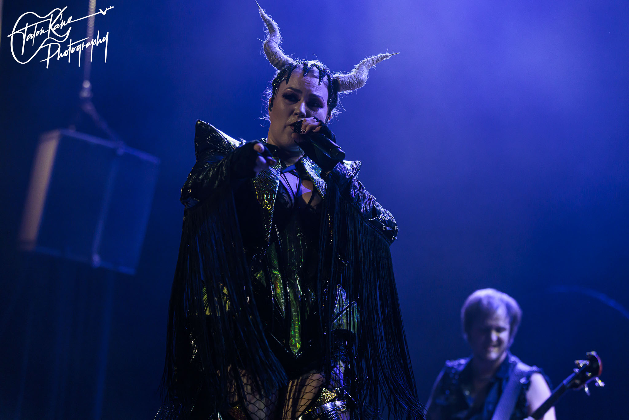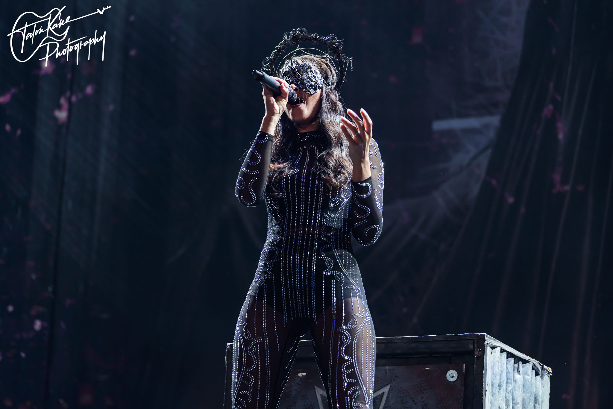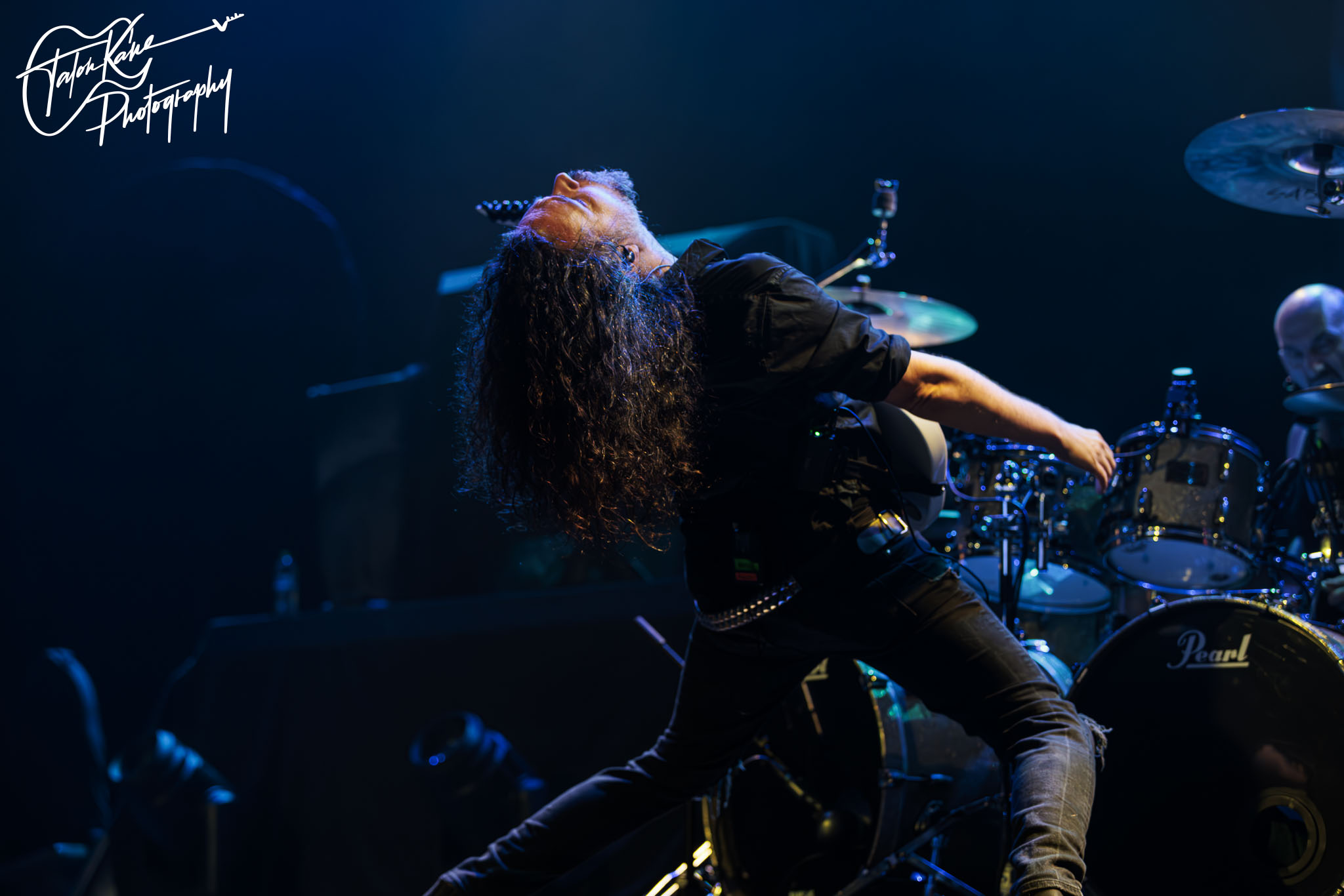 Kamelot plays such beautiful metal music and Tommy’s vocals are so breathtaking and chilling. What you don’t get to see when listening to their albums instead of seeing them live is the theatrical elements they add to their performance. With a beautiful massive backdrop of the Awakening album cover, a beautiful platformed stage, and boxes in the photo pit so Tommy to get closer to the crowd, Kamelot truly goes all out to make their performance an experience for their fans. Alex on the drums is truly incredible, especially being the newest member of the band. He even had a drum solo that was absolutely insane and also paid tribute to Neal Peart, former drummer of Rush, when he included performing the drum portion of “Tom Sawyer”. Oliver, described as the wizard behind the keys, is a master of his craft and also had a small solo that night showing off exactly why keyboards are still so relevant in music, especially symphonic metal. Sean is a maniac on the stage and throws down while he plays including some jumps and headbanging with his hair flying everywhere. Thomas keeps mainly stoic as he performs, and he does so with just such beautiful guitar work. He truly makes the guitar sing through every note he shreds. And what can I say about Tommy’s vocals other than “Wow!” His voice is crystal clear and the notes he reaches at times are truly incredible. The addition of Melissa Bonny for this tour was truly a bonus to hear such amazing harmonies between her and Tommy, plus the theatrics they performed were truly hair-raising.