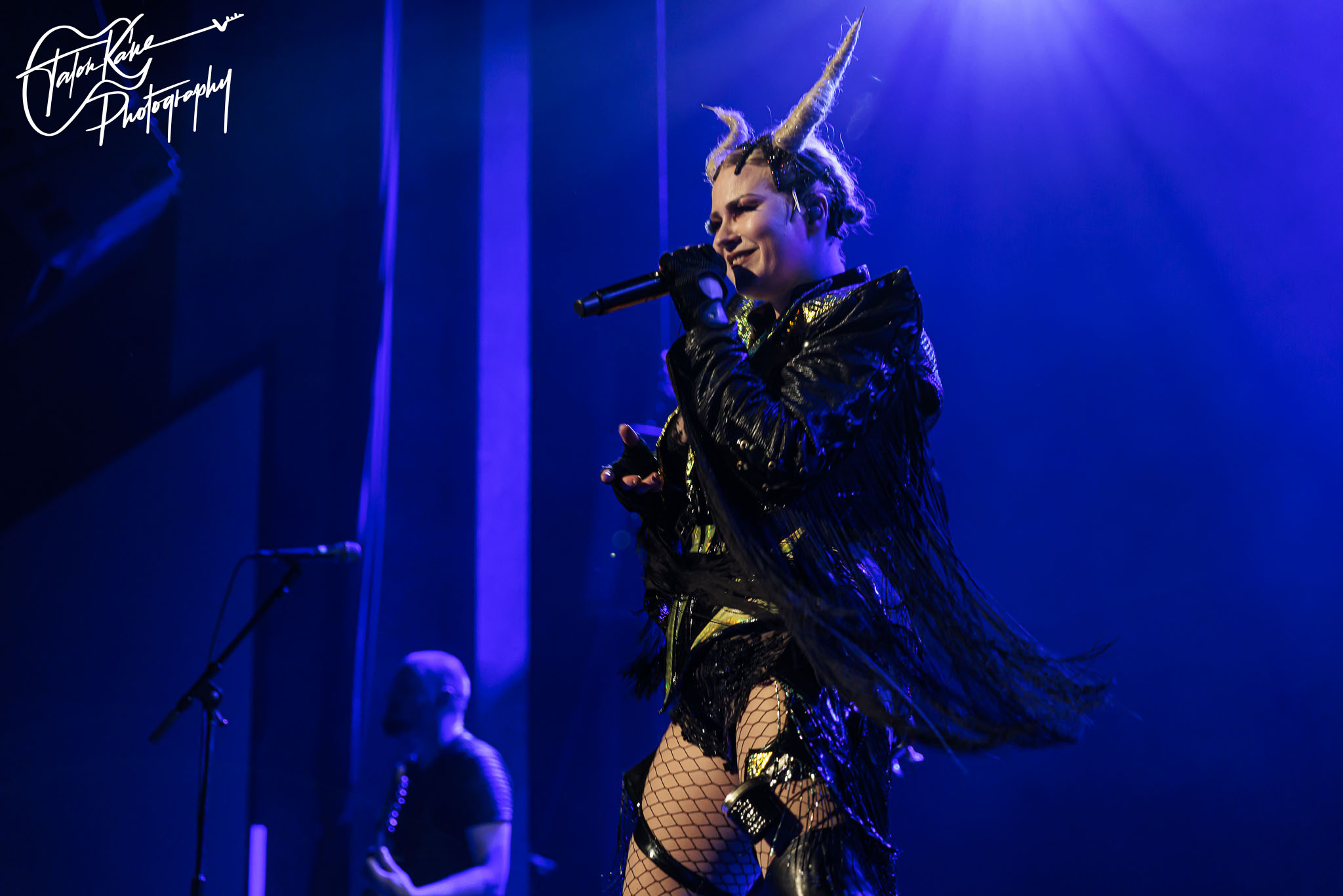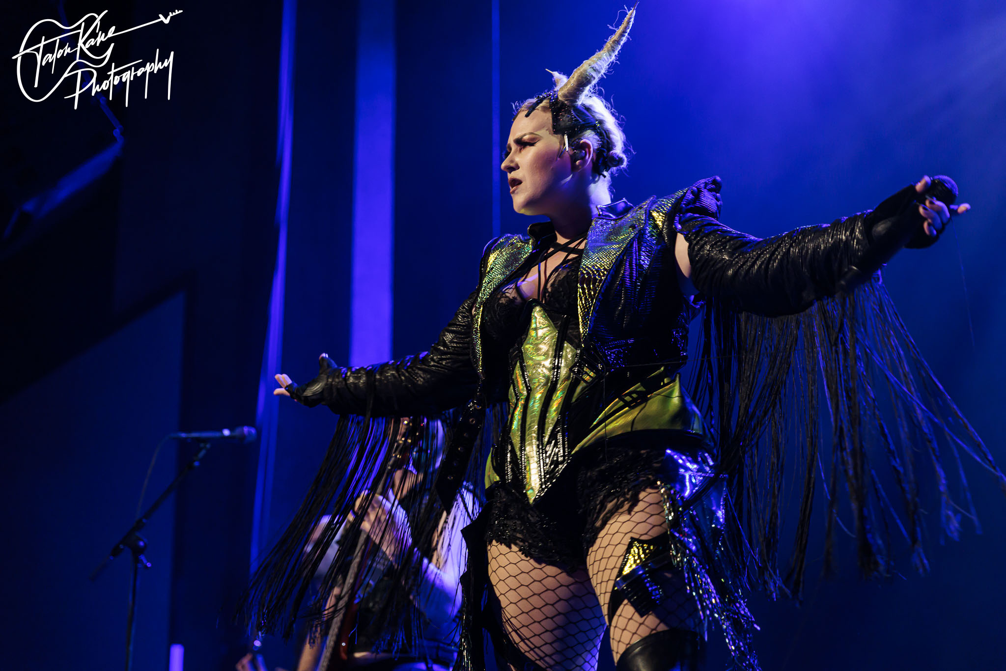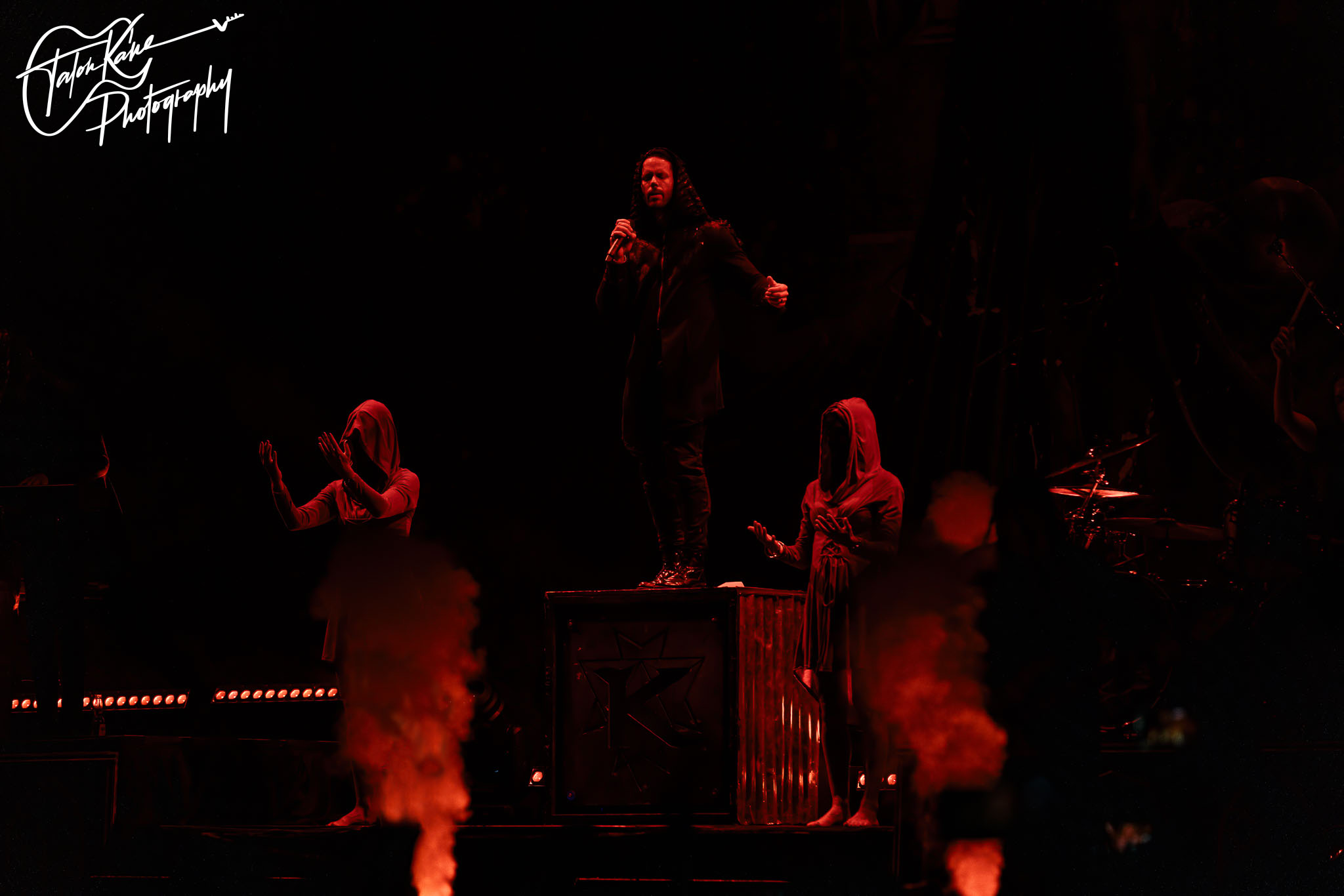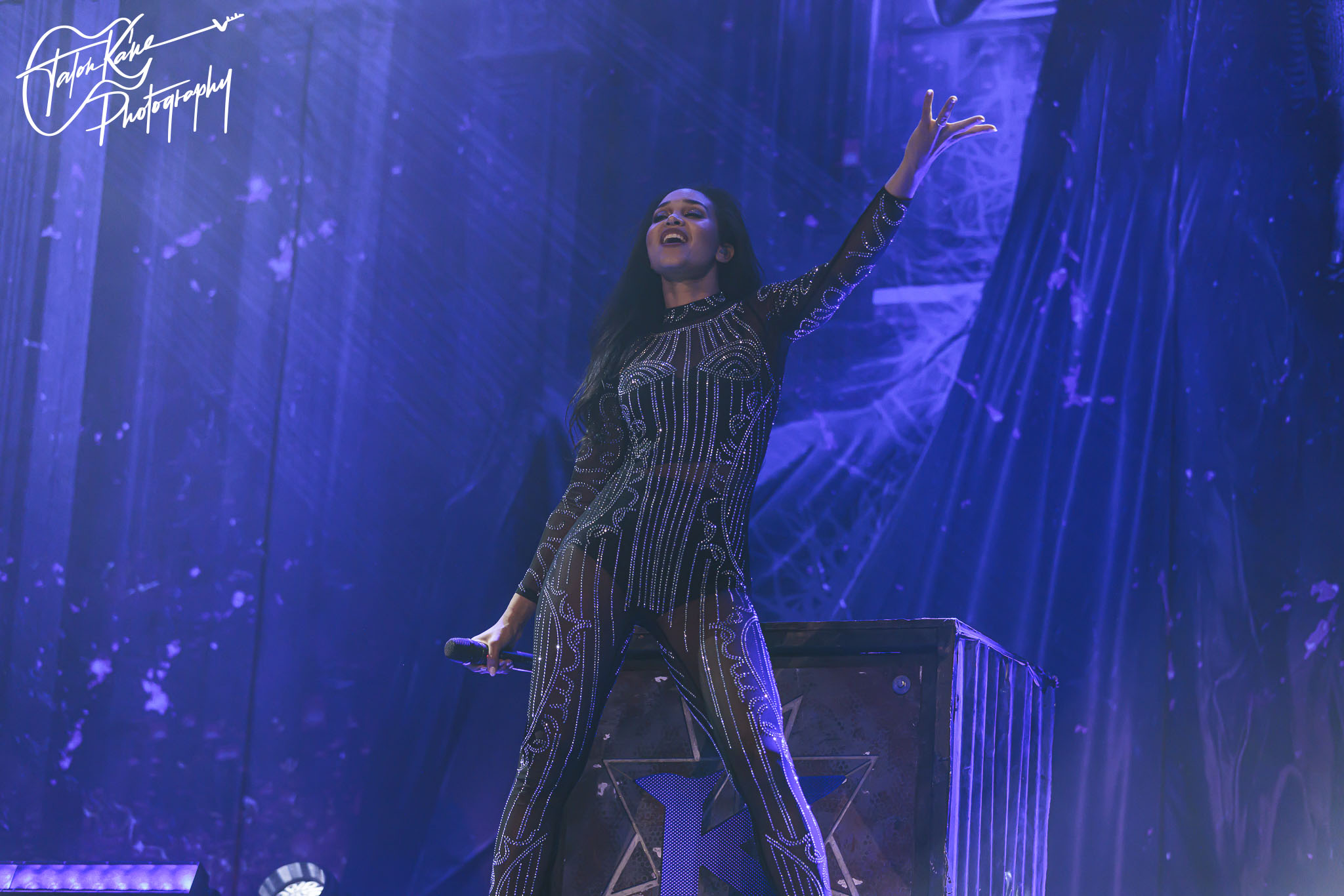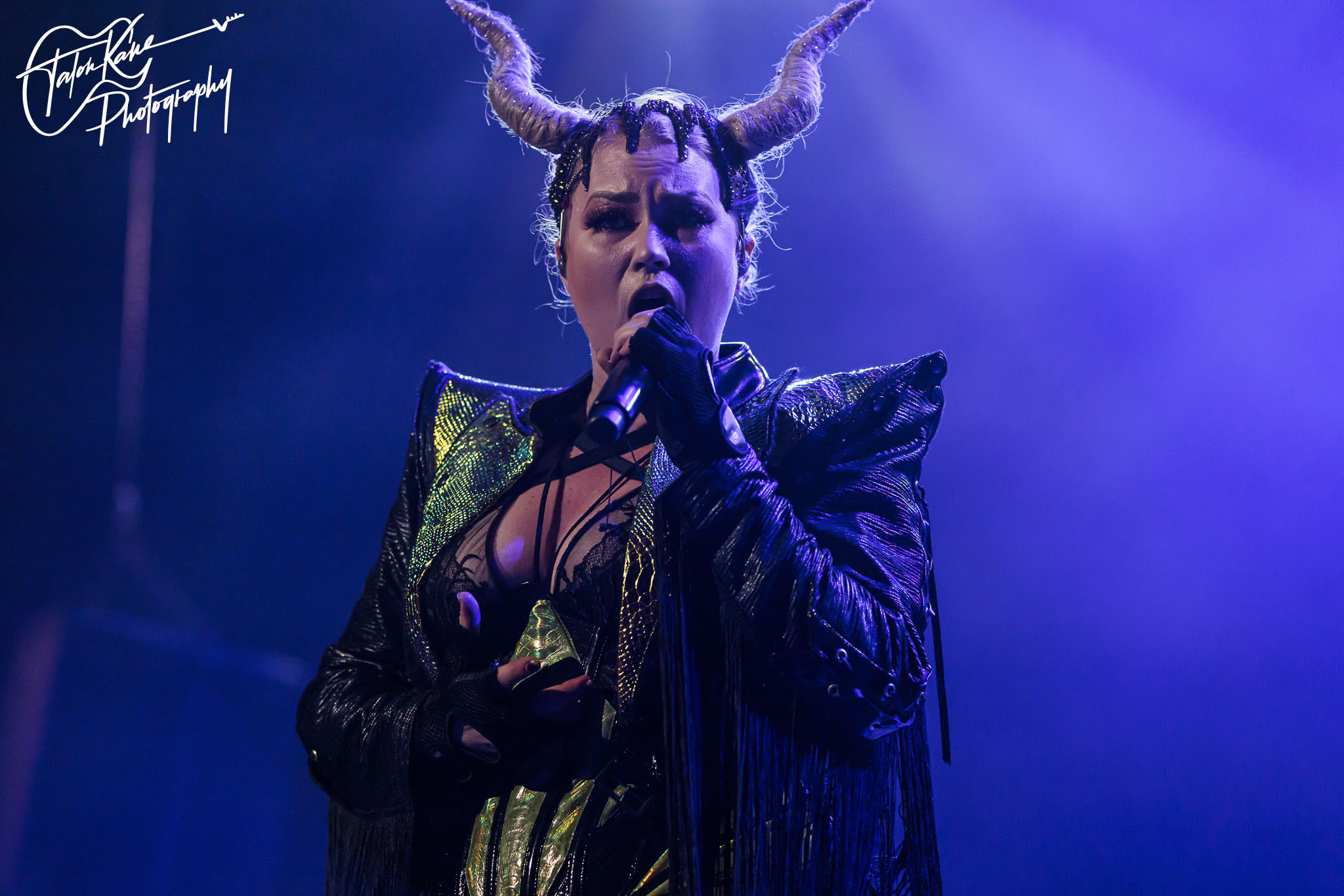 Kamelot plays such beautiful metal music and Tommy’s vocals are so breathtaking and chilling. What you don’t get to see when listening to their albums instead of seeing them live is the theatrical elements they add to their performance. With a beautiful massive backdrop of the Awakening album cover, a beautiful platformed stage, and boxes in the photo pit so Tommy to get closer to the crowd, Kamelot truly goes all out to make their performance an experience for their fans. Alex on the drums is truly incredible, especially being the newest member of the band. He even had a drum solo that was absolutely insane and also paid tribute to Neal Peart, former drummer of Rush, when he included performing the drum portion of “Tom Sawyer”. Oliver, described as the wizard behind the keys, is a master of his craft and also had a small solo that night showing off exactly why keyboards are still so relevant in music, especially symphonic metal. Sean is a maniac on the stage and throws down while he plays including some jumps and headbanging with his hair flying everywhere. Thomas keeps mainly stoic as he performs, and he does so with just such beautiful guitar work. He truly makes the guitar sing through every note he shreds. And what can I say about Tommy’s vocals other than “Wow!” His voice is crystal clear and the notes he reaches at times are truly incredible. The addition of Melissa Bonny for this tour was truly a bonus to hear such amazing harmonies between her and Tommy, plus the theatrics they performed were truly hair-raising.