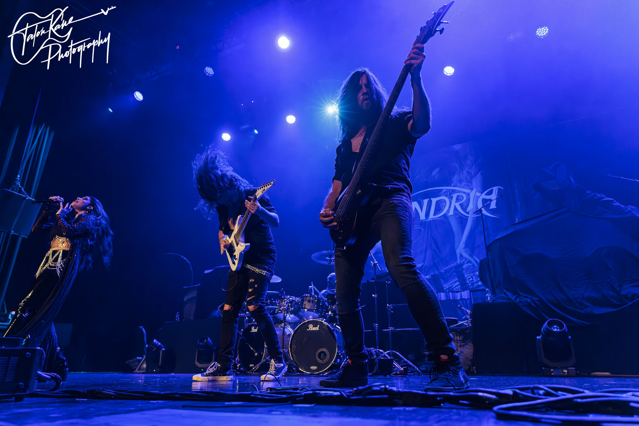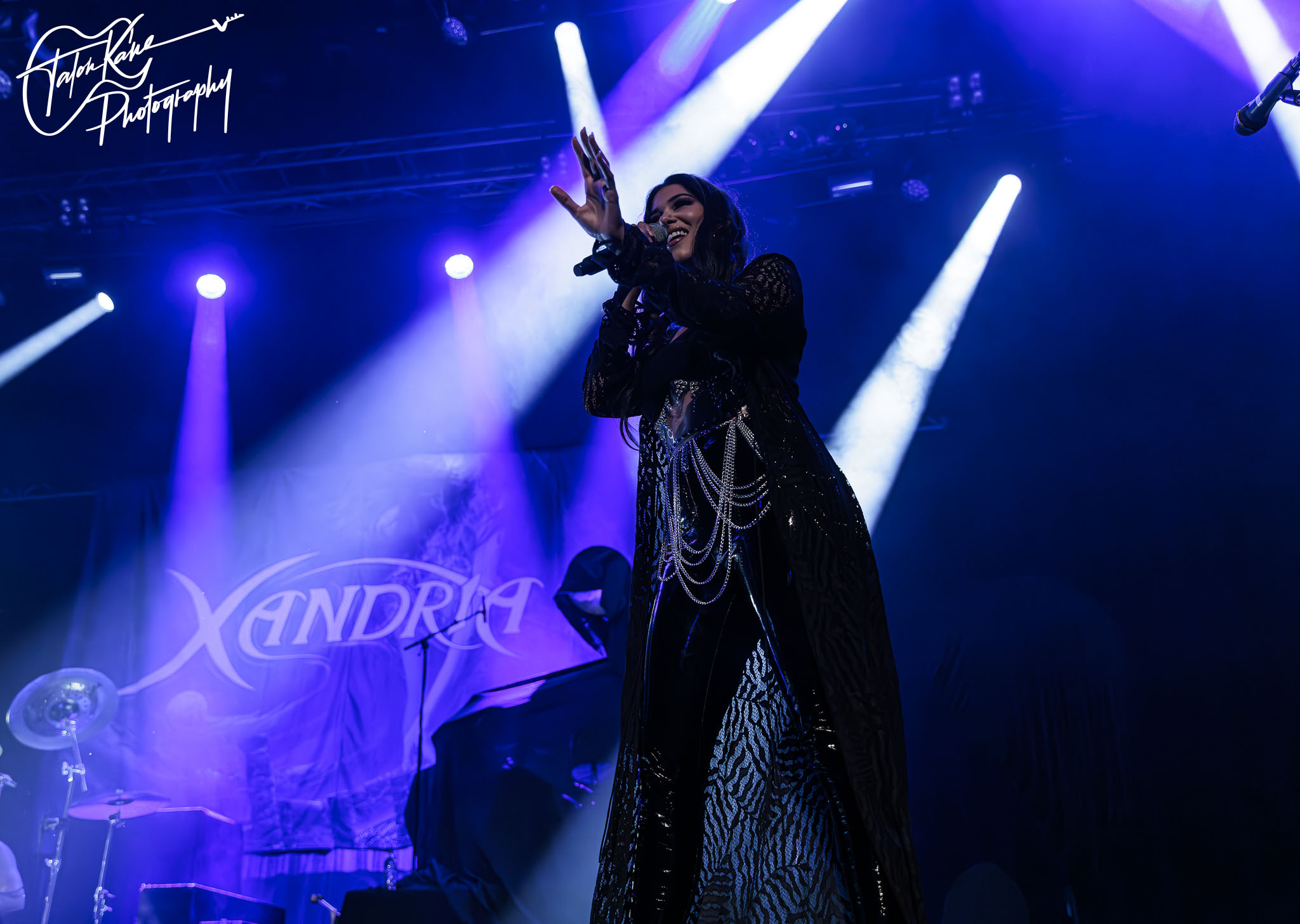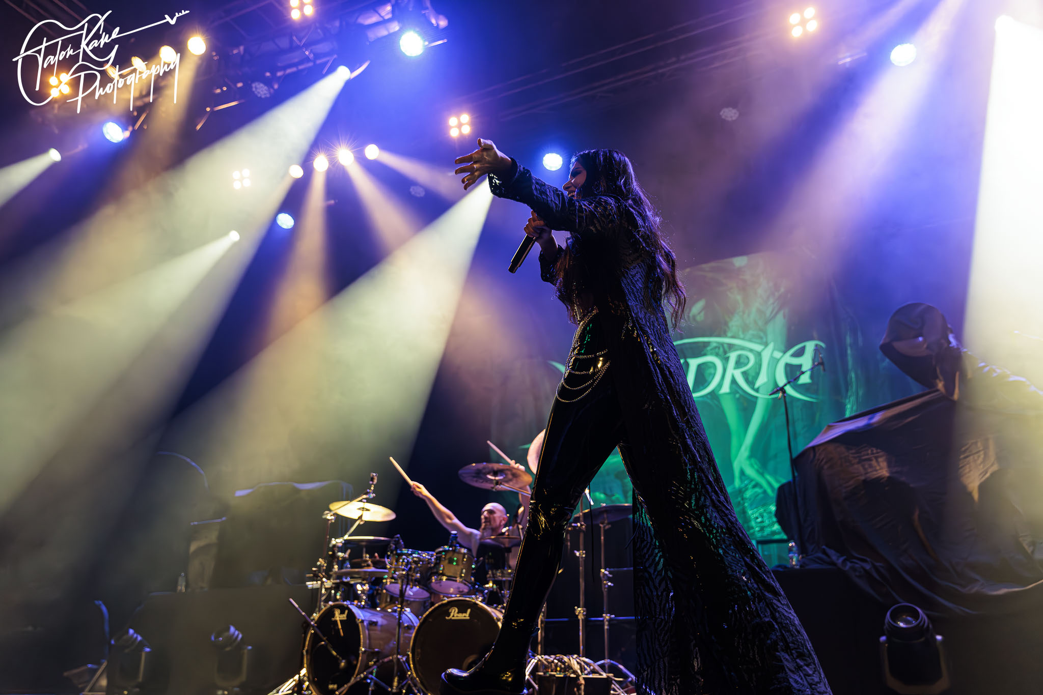 The German symphonic metal band Xandria opened up the show. The band has been around since their start in 1994, disbanding in 1997, and then re-starting again in 1999. The band has gone through many lineup changes over the years. But, this recent lineup has a different feel than their prior lineups and almost seems like a rebirth of the band. With 7 albums released, it took 6 years for them to release their 8th studio album titled The Wonders Still Awaiting on February 3, 2023 via Napalm Records. The album was so well received and hit #9 on the German Album charts. Xandria is Ambre Vourvahis (vocals), Marco Heubaum (guitar), Robert Klawonn (guitar), Tim Schwarz (bass), and Dimitrios Gatsios (drums).