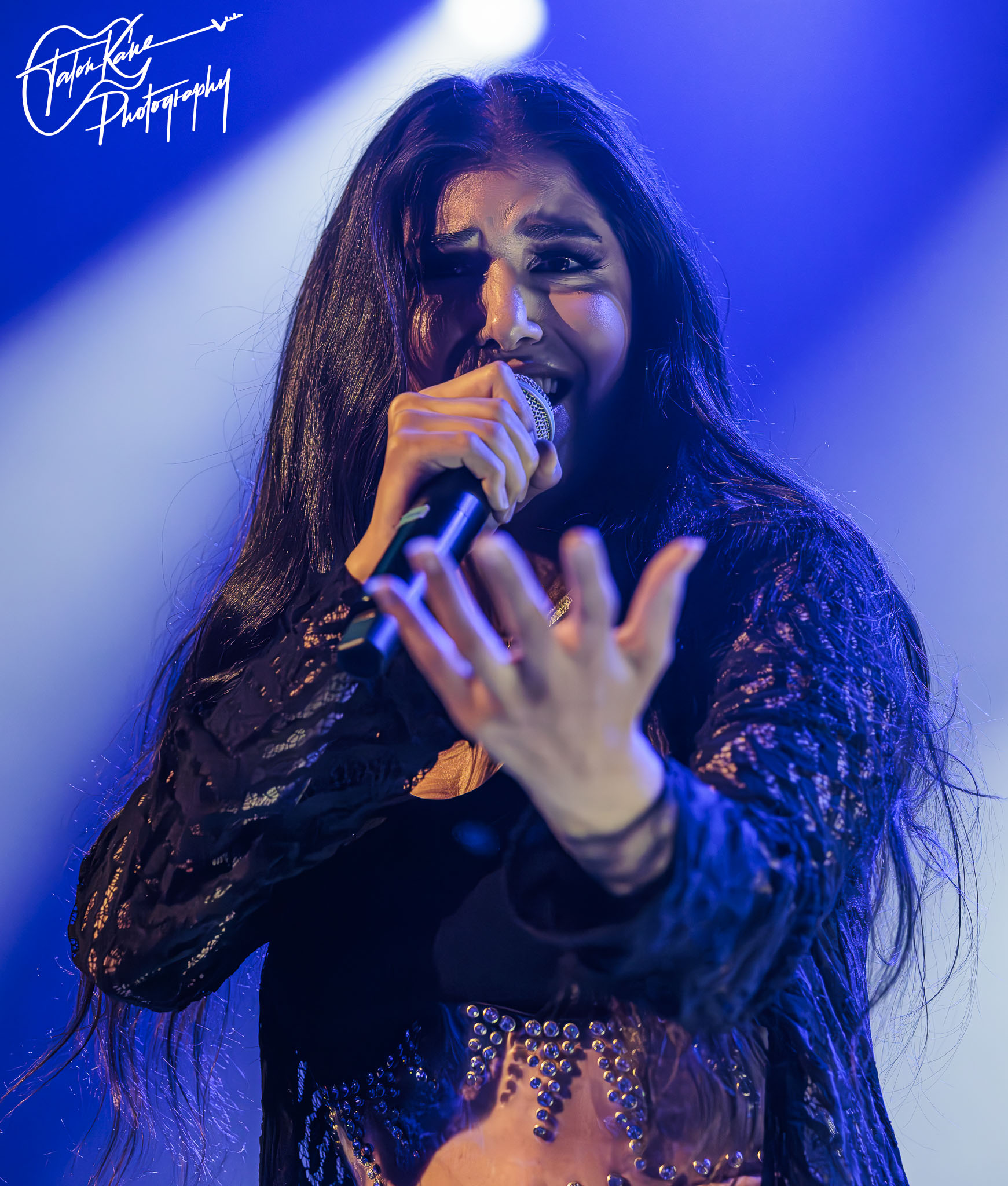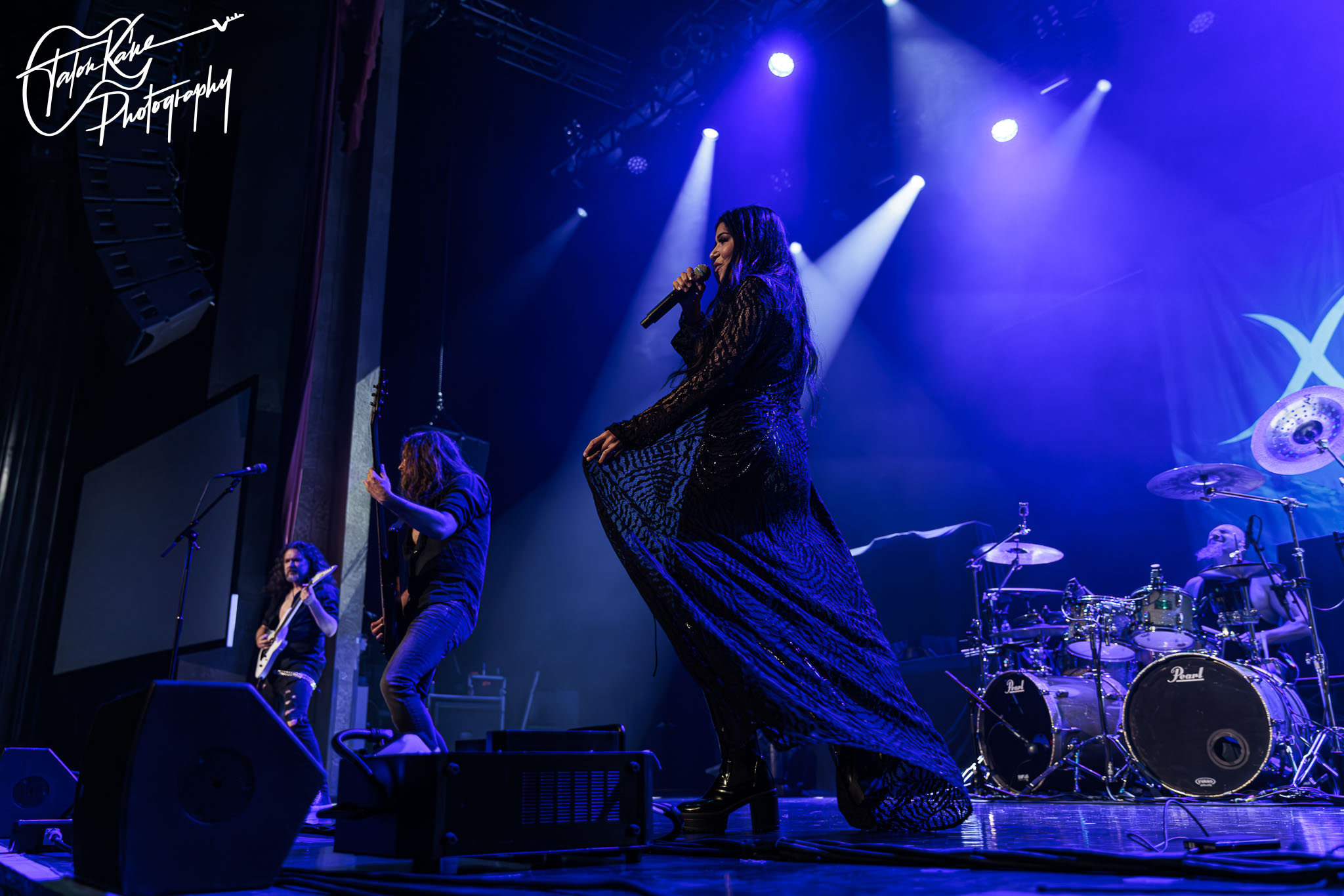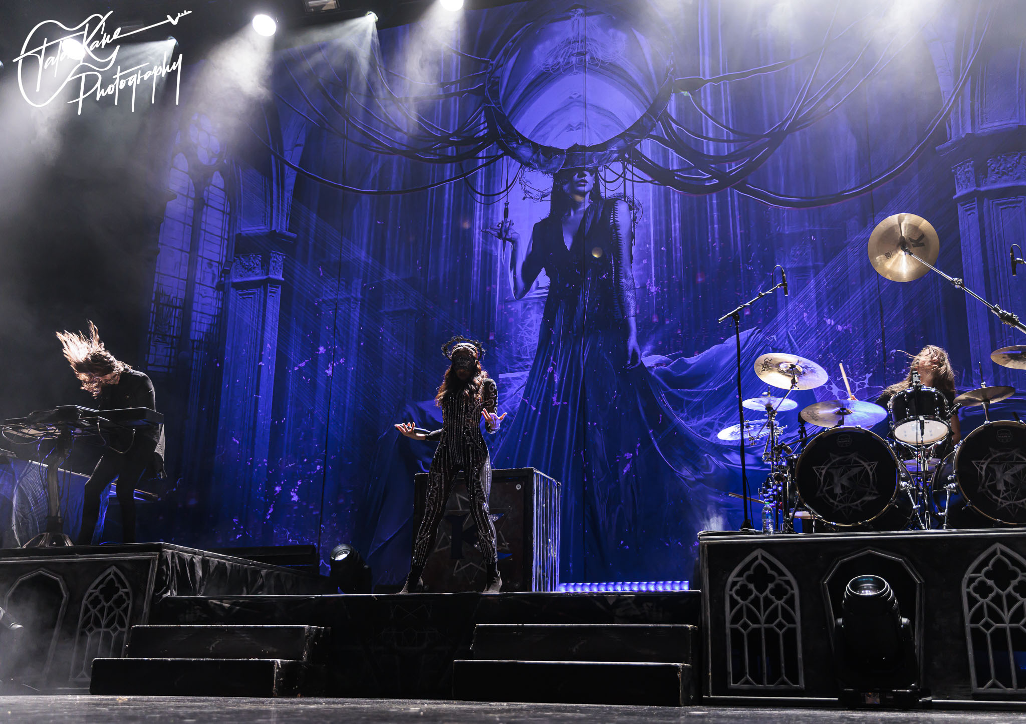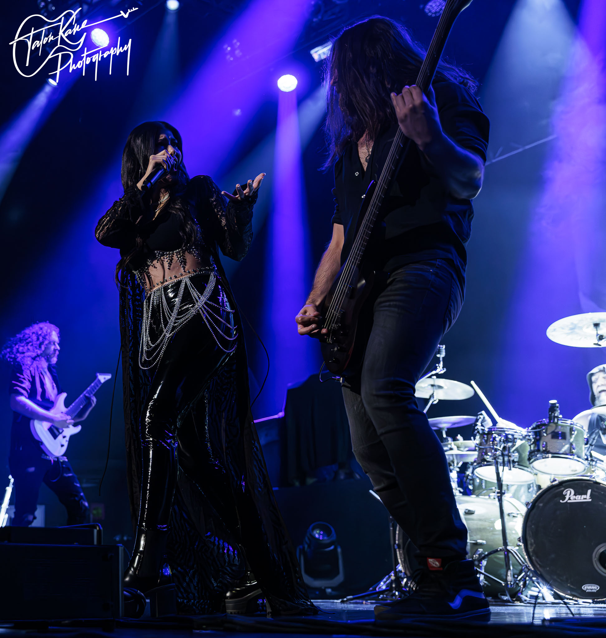 The German symphonic metal band Xandria opened up the show. The band has been around since their start in 1994, disbanding in 1997, and then re-starting again in 1999. The band has gone through many lineup changes over the years. But, this recent lineup has a different feel than their prior lineups and almost seems like a rebirth of the band. With 7 albums released, it took 6 years for them to release their 8th studio album titled The Wonders Still Awaiting on February 3, 2023 via Napalm Records. The album was so well received and hit #9 on the German Album charts. Xandria is Ambre Vourvahis (vocals), Marco Heubaum (guitar), Robert Klawonn (guitar), Tim Schwarz (bass), and Dimitrios Gatsios (drums).