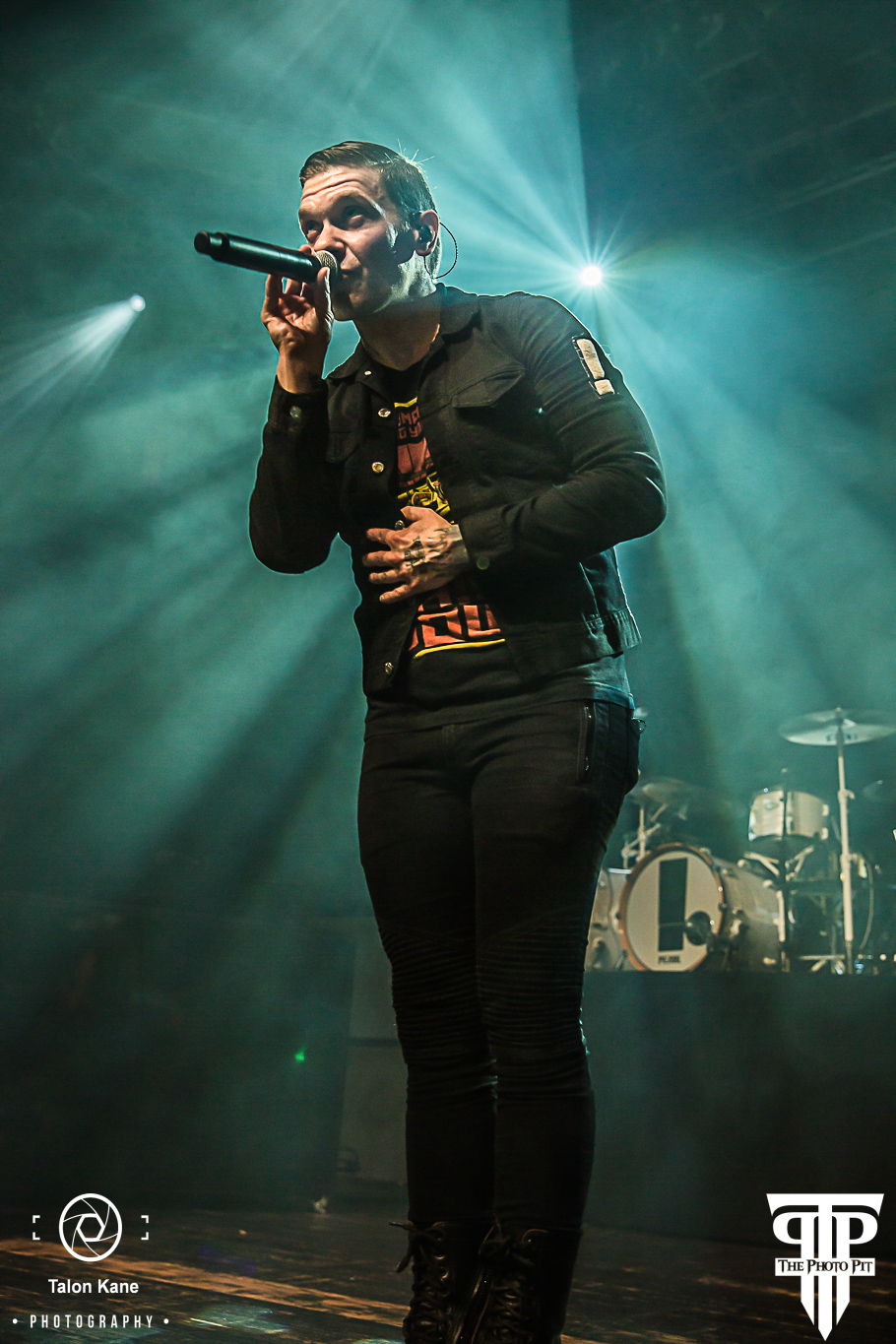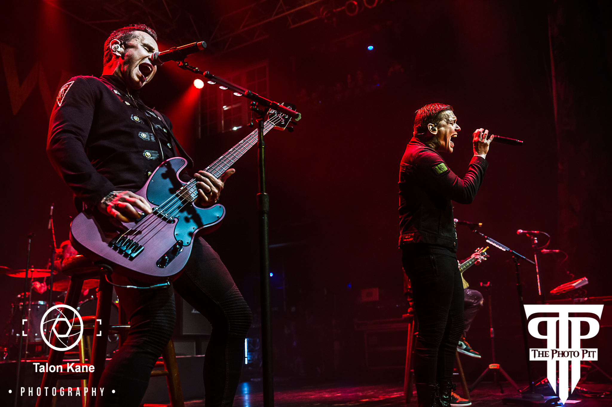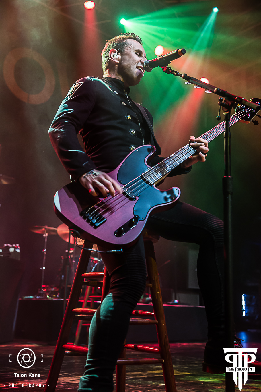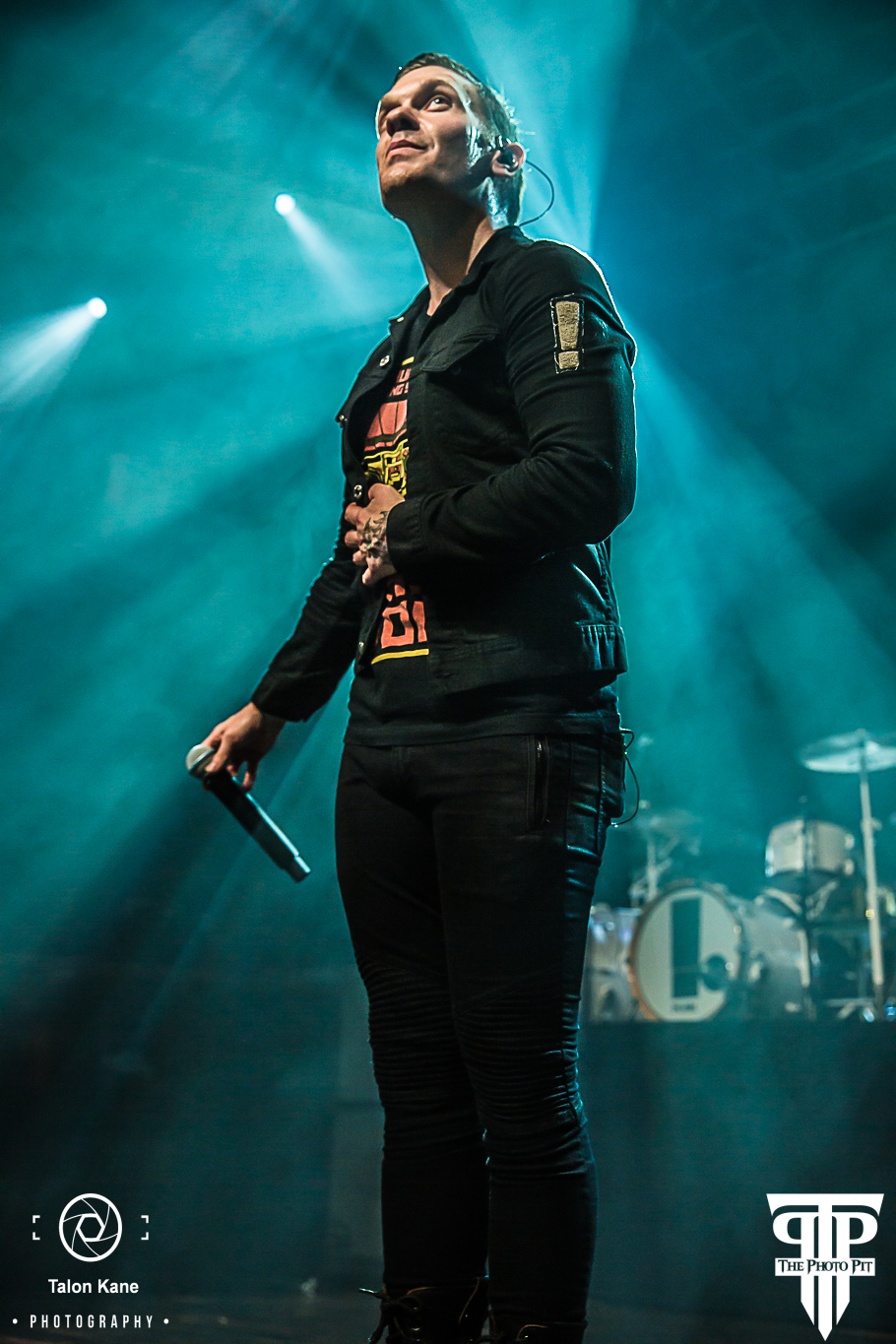 In the months leading up to the show, there was a ton of speculation as to what Shinedown would include in these shows. After Thursday’s show, we had heard rumors in the venue Shinedown would perform an acoustic set on Friday. That turned out to be true. Brent Smith (vocals), Zach Myers (guitar), Eric Bass (bass), and Barry Kerch (drums) made their way to the stage all wearing matching dark blue jackets with the ‘Attention Attention’ exclamation point embroidered on the left sleeve. Barry manned a much smaller drum set and Zach walked out with an acoustic guitar in hand. Zach and Eric made themselves comfortable on stools while Brent pulled his away opting to stand while he sang. They decided to go back to true old school Shinedown kicking it off with “Fly From The Inside” the band’s very first single off their first album ‘Leave a Whisper’. I’ve never heard the song played this way and absolutely loved it. I could already see we were in for something truly special tonight. They followed with “Unity” from the 2012 album ‘Amaryllis’.