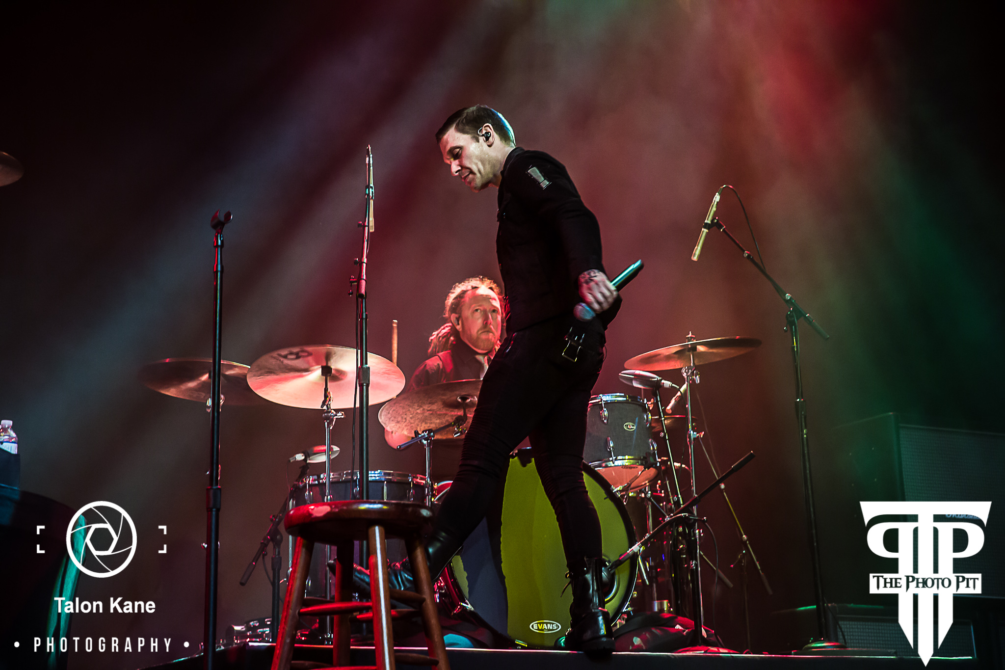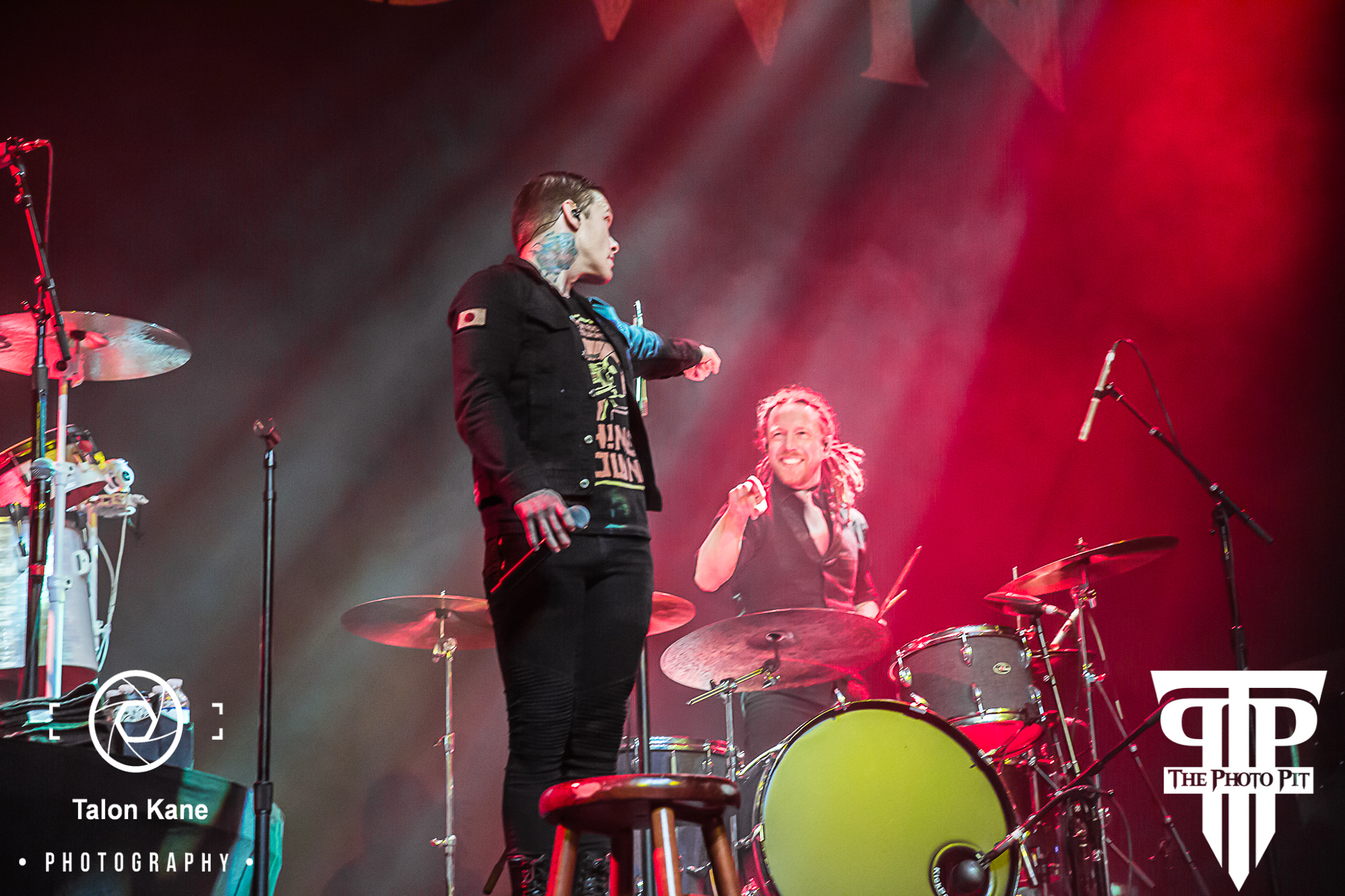 The House of Blues Orlando was packed very early on outside as people had been waiting in line very early in the day. And much like the night before, the mass amount of people for a sold-out crowd to get through security and inside was simply going to take time. Once I was inside, I headed down to the photo pit with the rest of the media crew to wait for the start of the show. It took a lot of time and the crowd was getting anxious to get started, but once again Shinedown wanted to absolutely ensure everyone was in the building before they got started. A few minutes before they were ready to come out, Dickerman, one of the radio DJs from 101.1 WJRR, came out to thank the crowd for attending and for their patience. In due time, the curtains pulled back, the crowd roared, and in front of us, we saw mic stands, two drum sets on risers, and 3 stools. And it hit me they were doing an acoustic set that night.