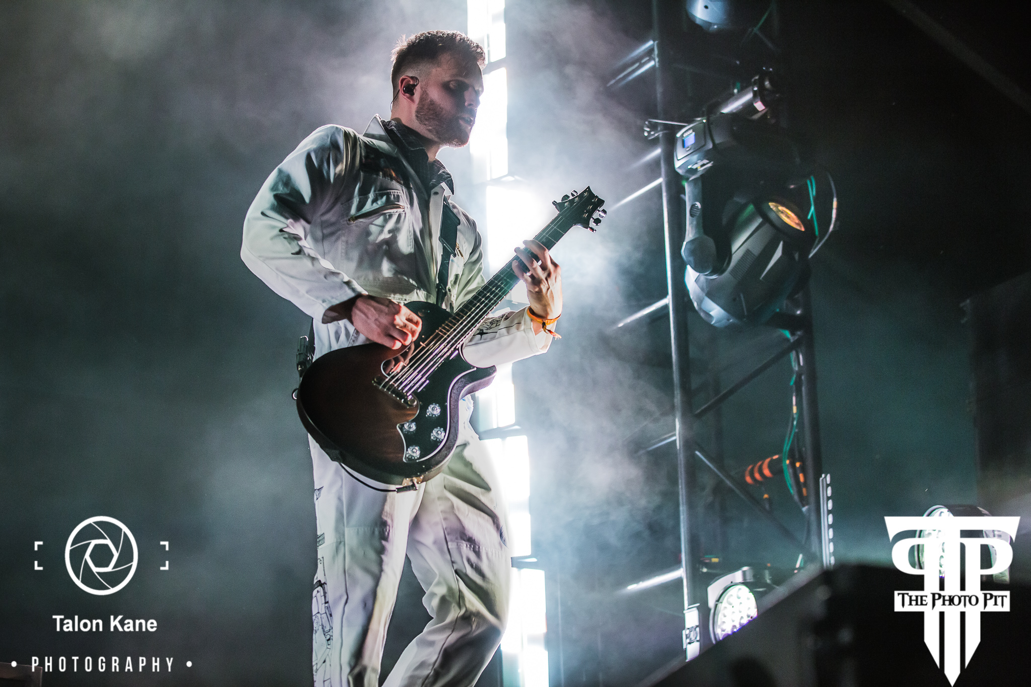 Papa Roach was ripping up a storm, better than the weather on Sunday, on the Metropolitan Stage with their music and lighting. Always a fan favorite their rock had the crowd moving hard. Right after their set, the British rockers Bring Me The Horizon was performing on the Monster Energy Stage. Their production set up was massive with a huge staircase leading up to a high platform, tons of fog, dancers, and pyrotechnics. The band wearing all white jumpsuits except for vocalist Oliver Sykes who was wearing red. Oliver urged the crowd to jump with them on the second song where they fired off the pyrotechnics. It was a very impressive performance.