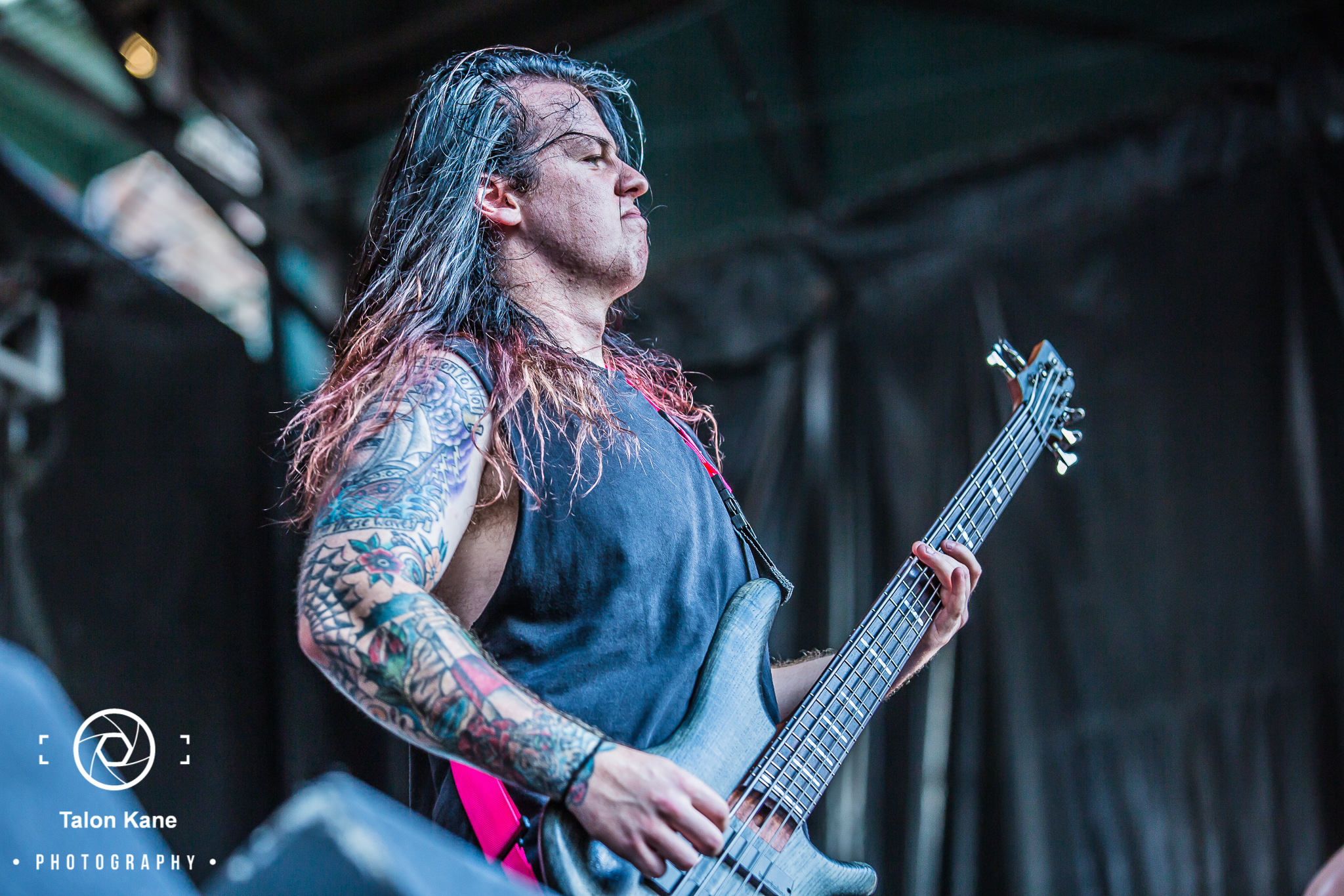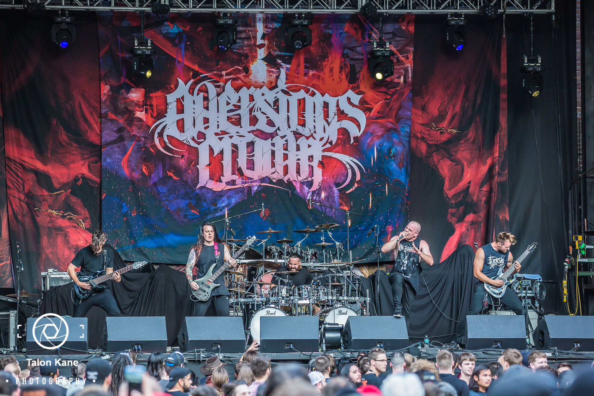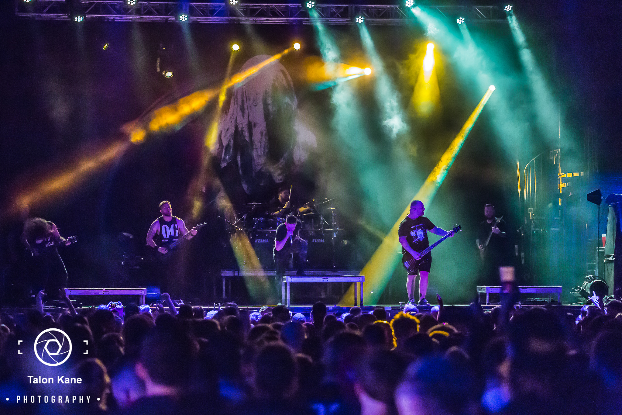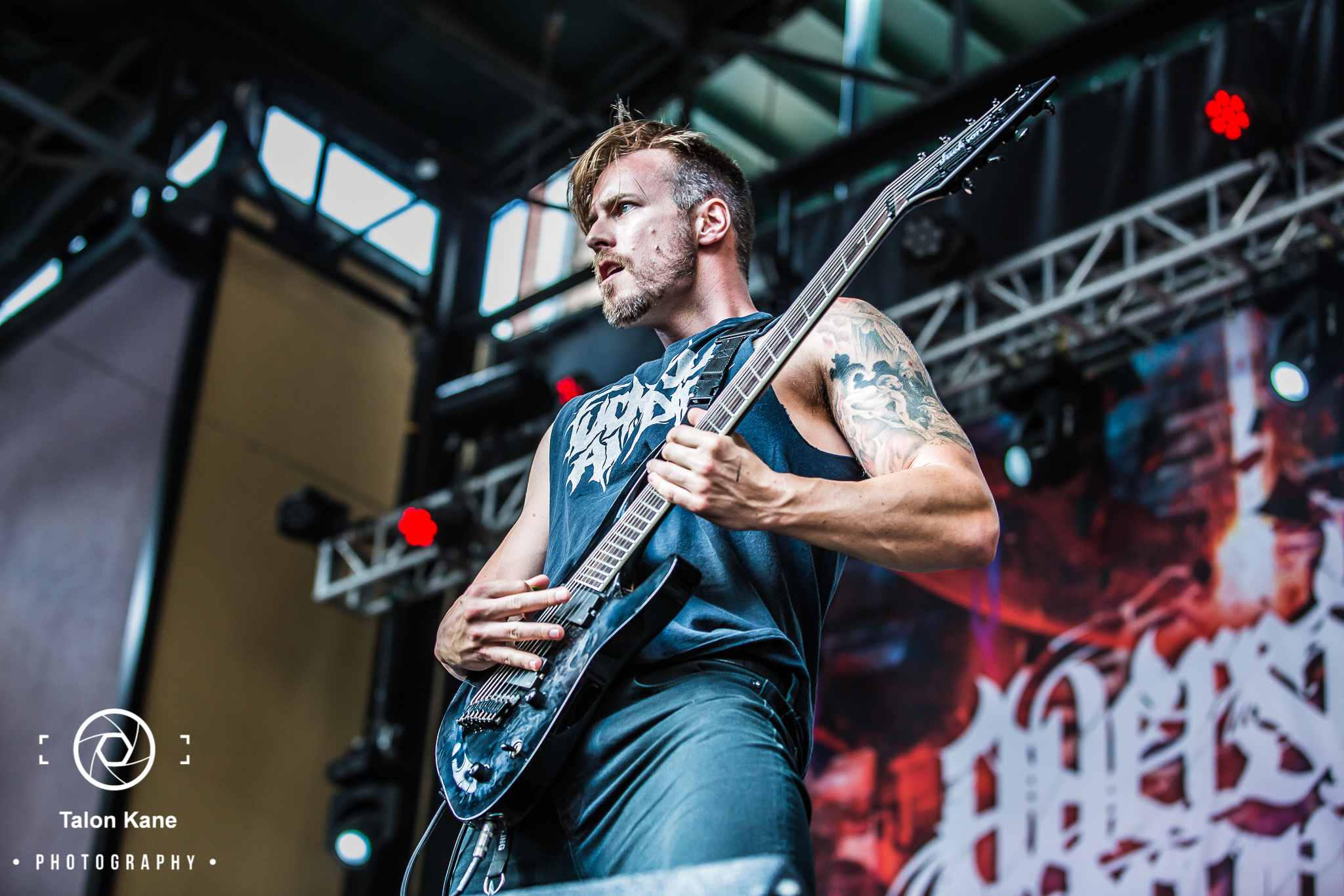Next up was Aversions Crown from Queensland, Brisbane, Australia. The band formed in 2010 perfecting their death metal sound touring all across Europe, UK, and Australia before releasing their first album ‘Tyrant’ in 2014. The album’s theme around “dystopian nightmares and hostile extraterrestrial encounters” (per their page on Nuclear Blast) put them on a long touring cycle including festivals. The band was well received in their tours in Europe and the UK. After finishing their tour they began work on their second album. ‘Xenocide’ was released in 2017 and though took a different direction on their death metal sound, still maintained their impactful pit moshing metal. The band consists of Mark Poida (vocals), Chris Cougan (guitar), Jayden Mason (drums), and ick Jeffery (bass).