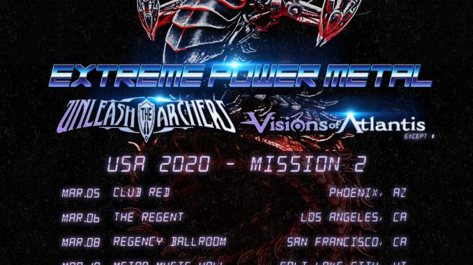 Premier Napalm Records artists UNLEASH THE ARCHERS and VISIONS OF ATLANTIS are thrilled to announce their upcoming support of headliners Dragonforce on their USA 2020 – Mission 2 Tour. The tour will begin on March 5, 2020 in Phoenix, AZ and come to an end in Brooklyn, NY on March 21. See below for all upcoming tour dates.